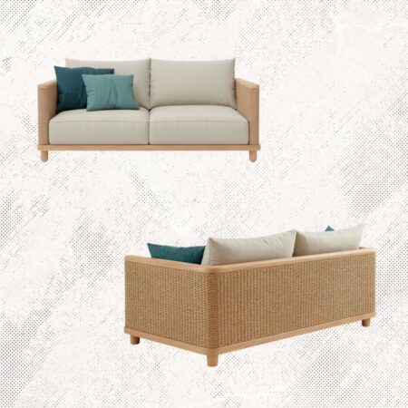Materiales: Estructura de madera, tejido con rejilla sintética de alta calidad, cojineria con espuma de alta densidad.