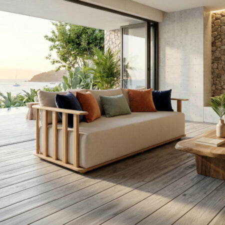 Materiales: Estructura de madera, cojineria con espuma de alta densidad.