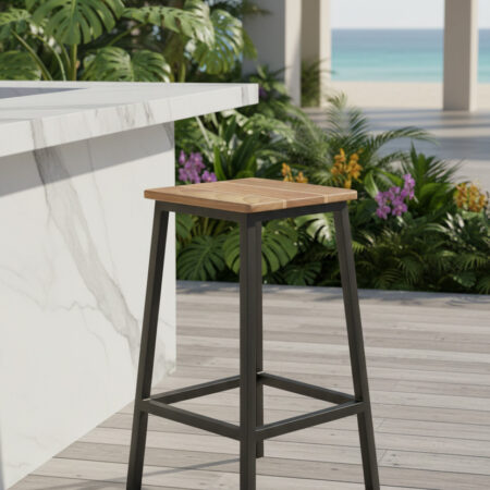 Estructura de aluminio cubierta con pintura electrostática para mayor resistencia y una cubierta de madera.