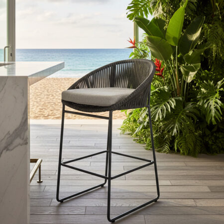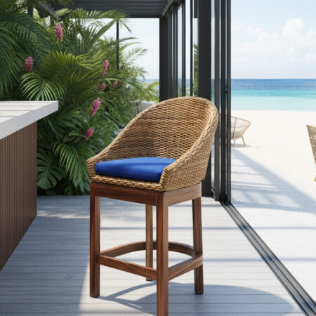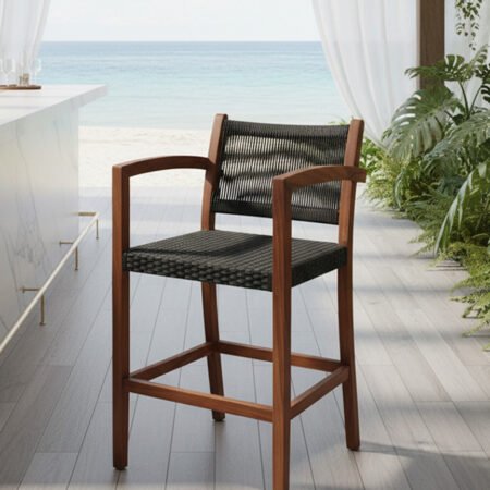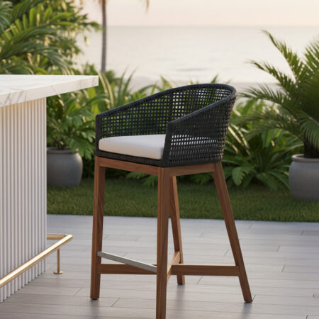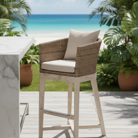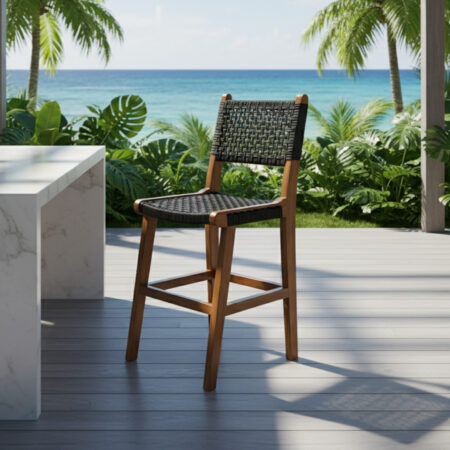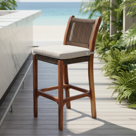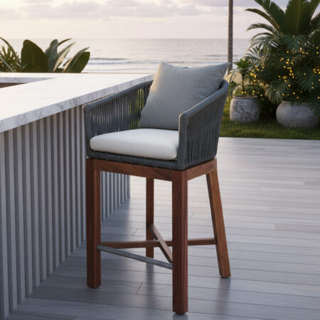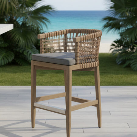 Materiales: Estructura de madera y aluminio, tejido con rejilla sintética de alta calidad, cojineria con espuma de alta densidad.