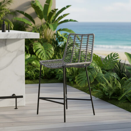 Materiales: Estructura de madera, tejido con rejilla sintética de alta calidad, cojineria con espuma de alta densidad.