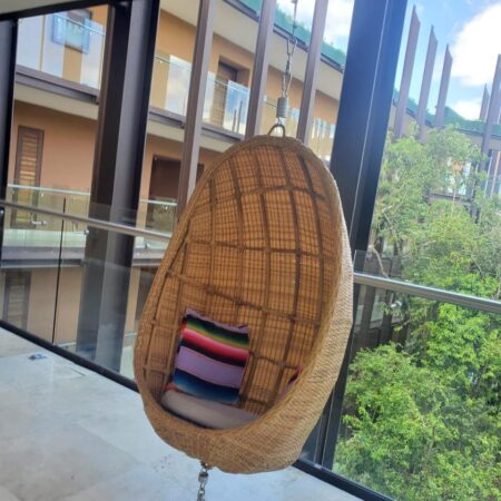 Armazón de aluminio, tejido con hilo, cojines en tela sumbrella, hule espuma de alta densidad.