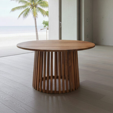Materiales: Mesa redonda para 6 sillas, con cubierta y base de madera.