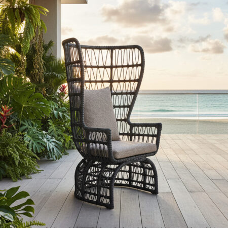Materiales: Estructura de madera y aluminio, tejido con rejilla sintética de alta calidad, cojineria con espuma de alta densidad.
