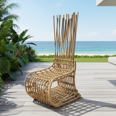 Materiales: Estructura de madera, tejido con rejilla sintética de alta calidad.