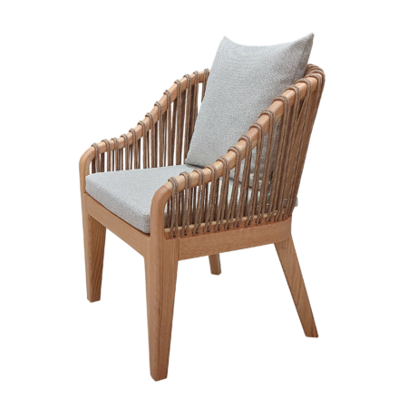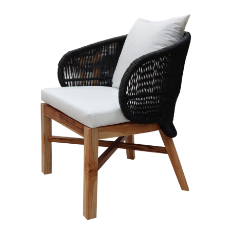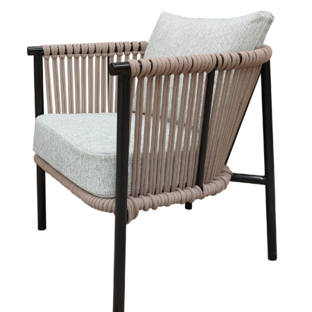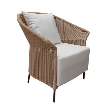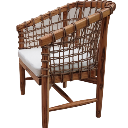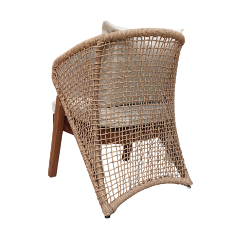 Materiales: Estructura de madera, tejido con rejilla sintética de alta calidad, cojineria con espuma de alta densidad.