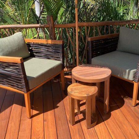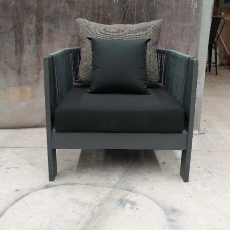 Materiales: Estructura de madera, tejido con rejilla sintética de alta calidad, cojineria con espuma de alta densidad.
