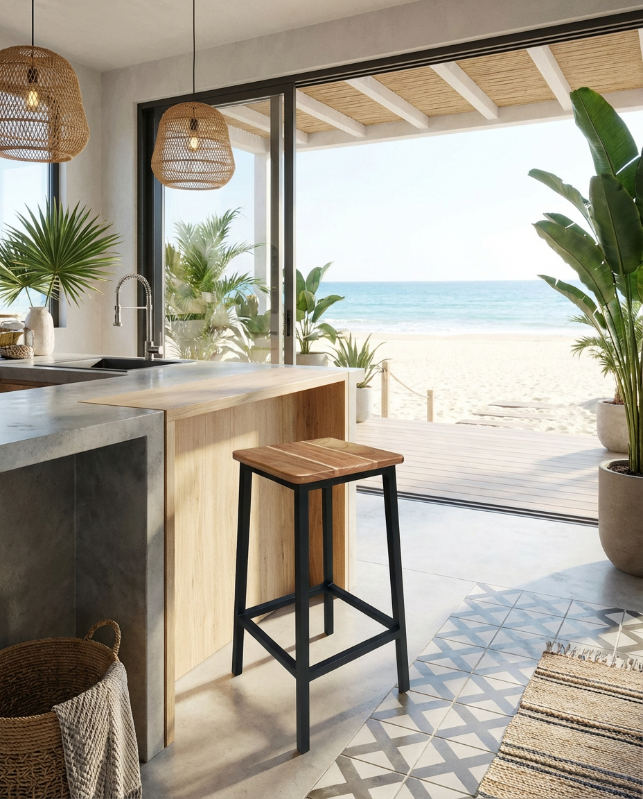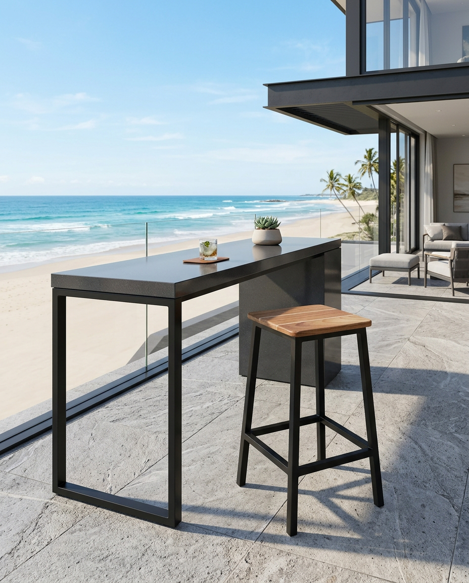 Materiales: Fabricado con estructura de aluminio cubierta con pintura electrostática para mayor resistencia y una cubierta de madera.