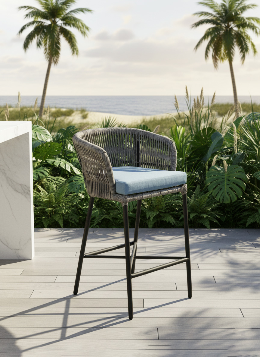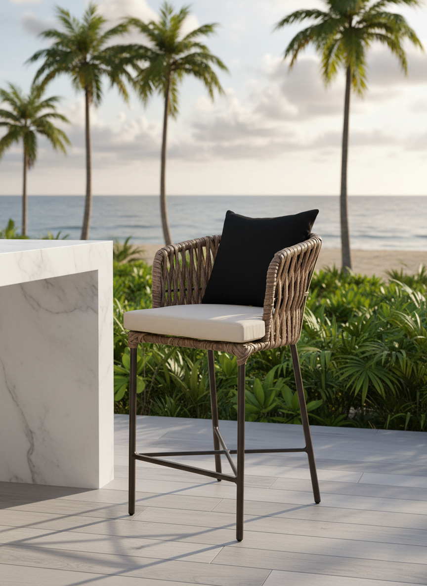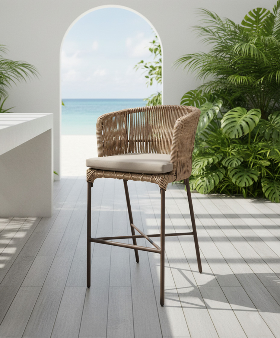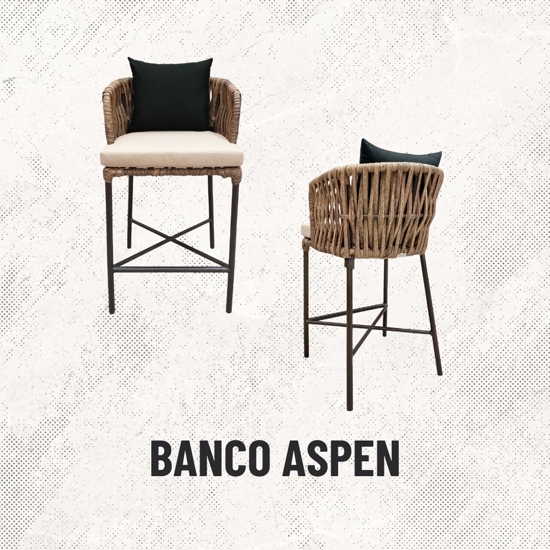 Materiales: Estructura de madera y aluminio, tejido con rejilla sintética de alta calidad, cojineria con espuma de alta densidad,