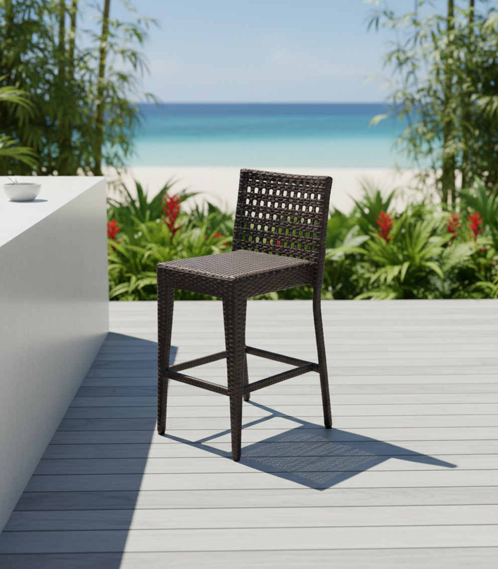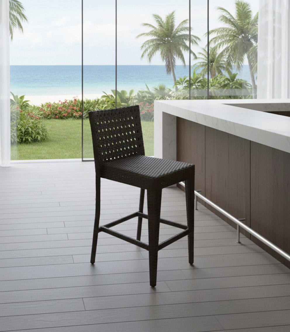 Materiales: Estructura de madera y aluminio, tejido con rejilla sintética de alta calidad, cojineria con espuma de alta densidad,