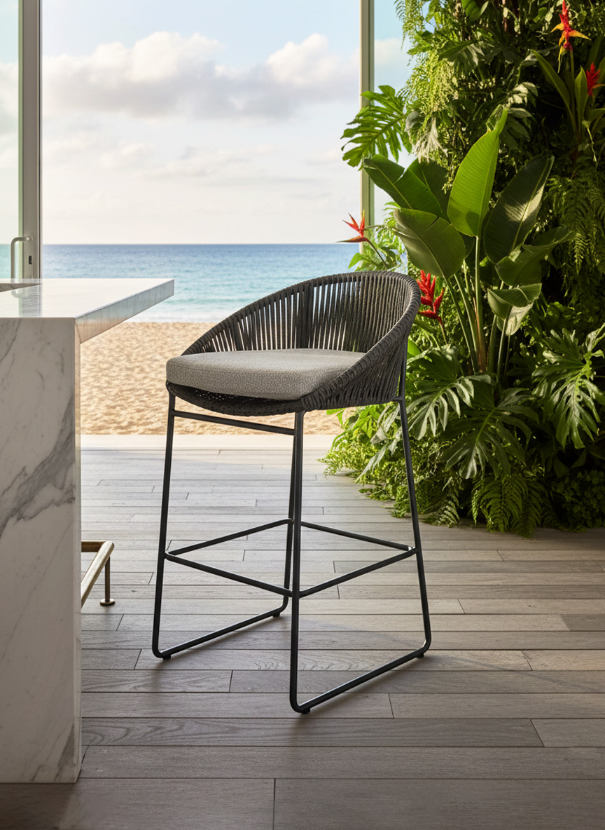 Materiales: Estructura de acero, tejido con rejilla sintética de alta calidad, cojineria con espuma de alta densidad.