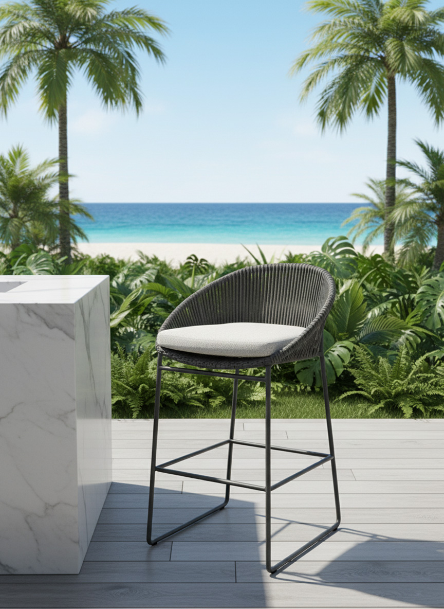 Materiales: Estructura de madera y aluminio, tejido con rejilla sintética de alta calidad, cojineria con espuma de alta densidad,