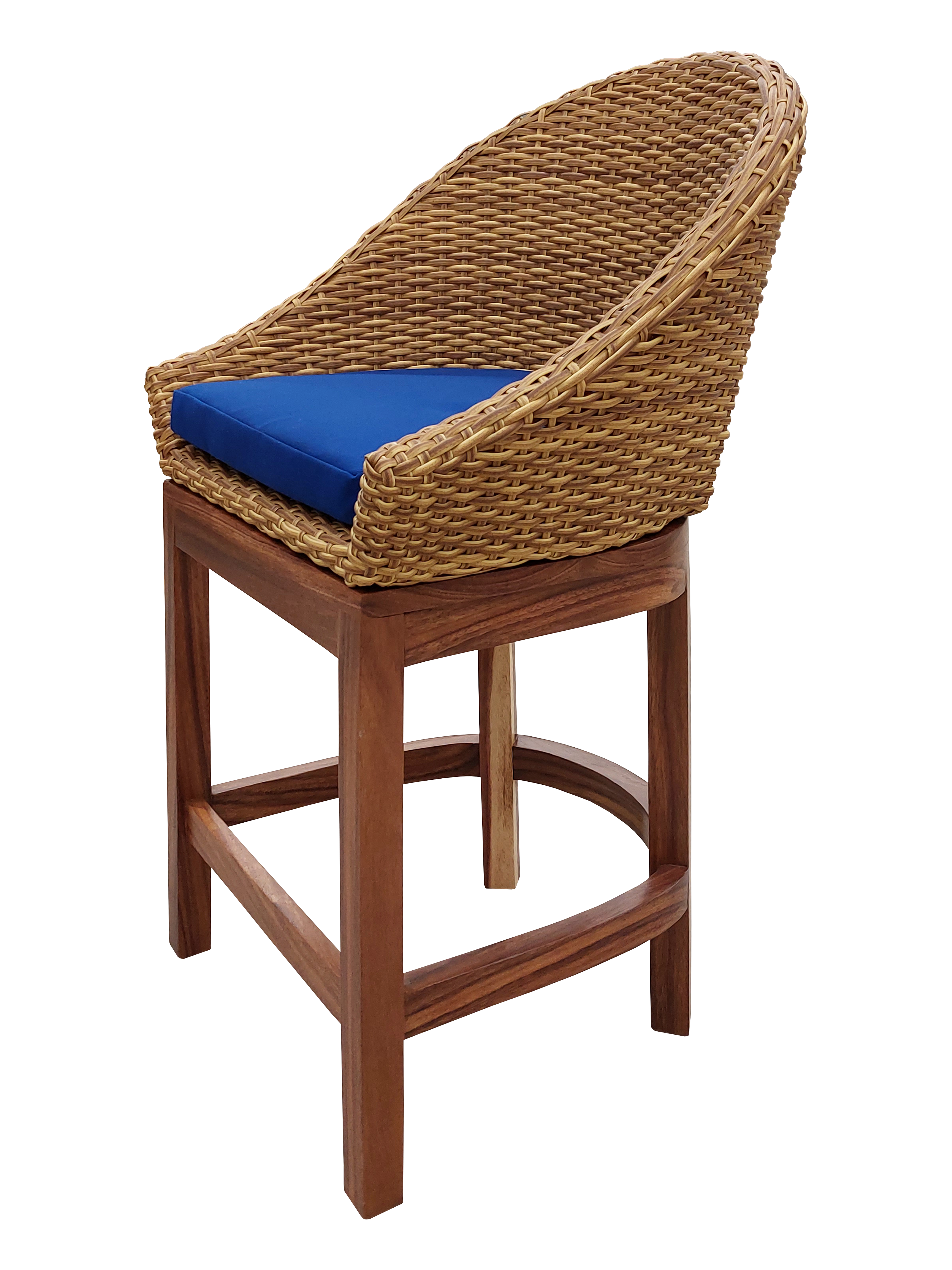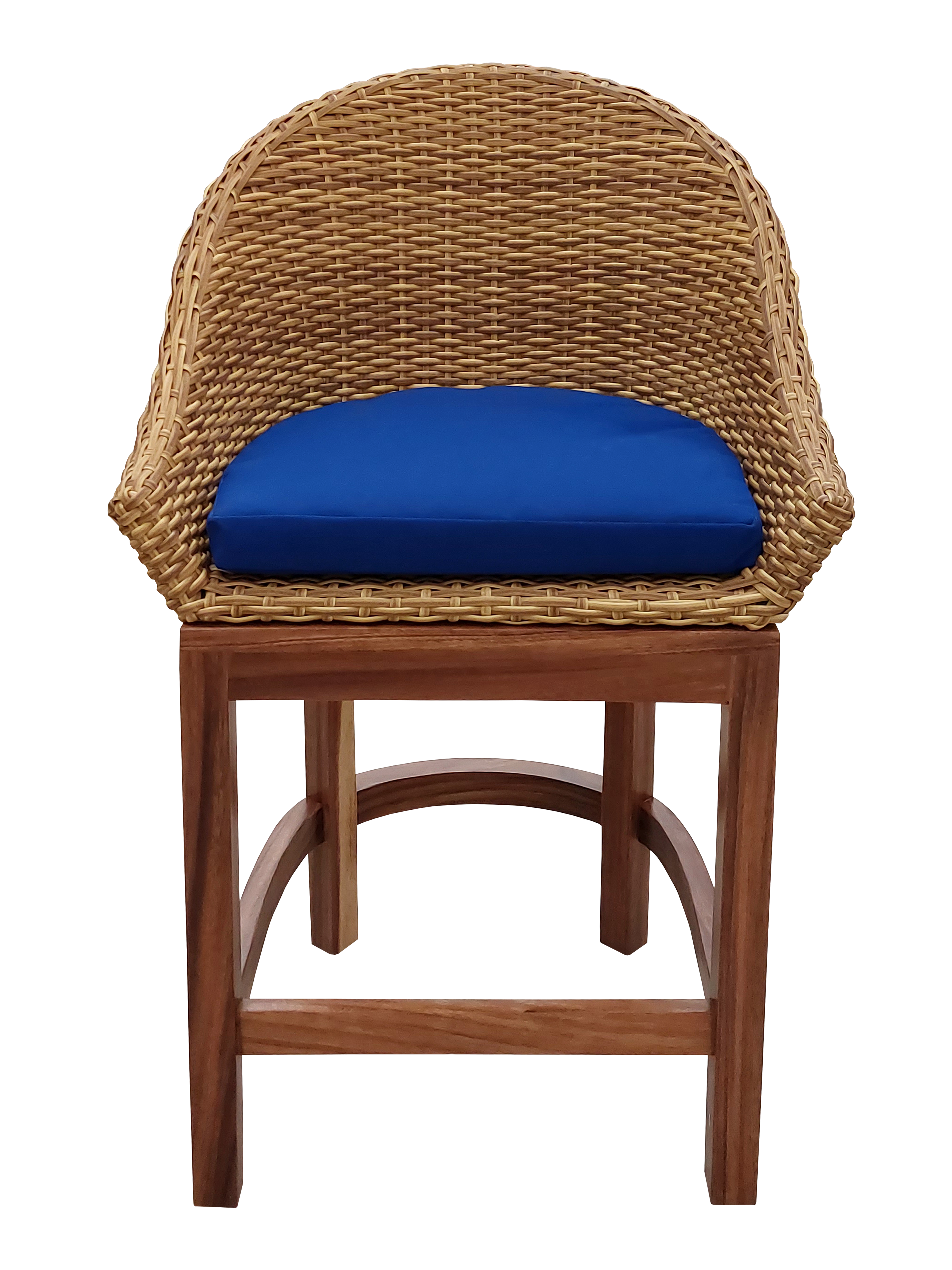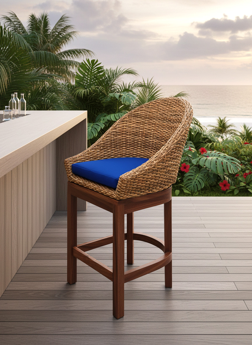 Materiales: Estructura de madera y aluminio, tejido con rejilla sintética de alta calidad, cojineria con espuma de alta densidad, funda interna y externa en tela resistente al sol y la intemperie con cierres reforzados.