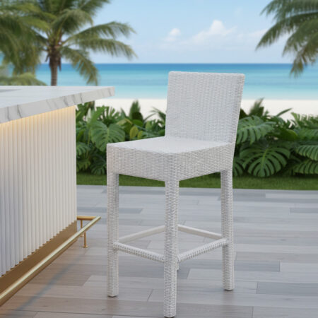 Armazón de aluminio, tejido con rejilla sintética, cojinería fabricada con hule espuma de alta densidad y tela resistente al sol y la intemperie.