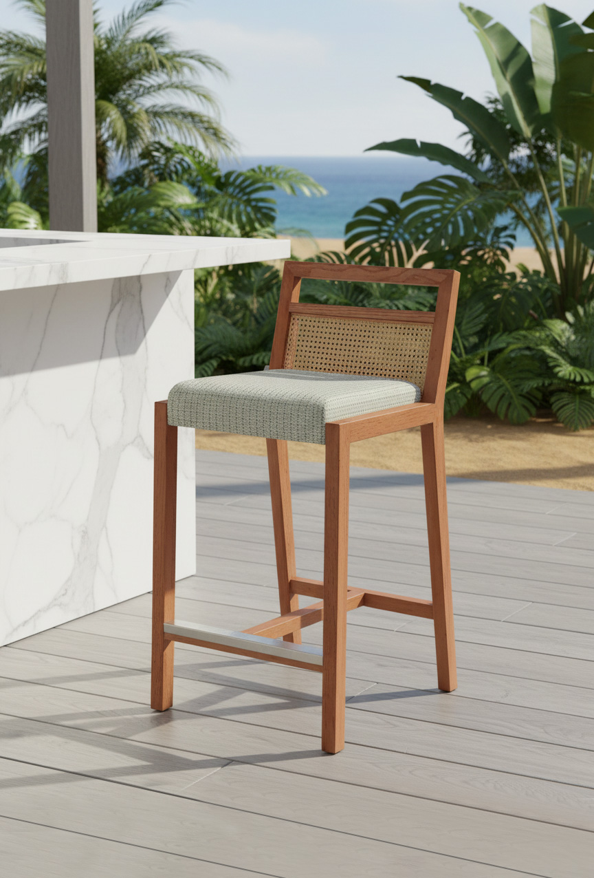 Materiales: Estructura de madera, tejido con rejilla sintética de alta calidad, cojineria con espuma de alta densidad.