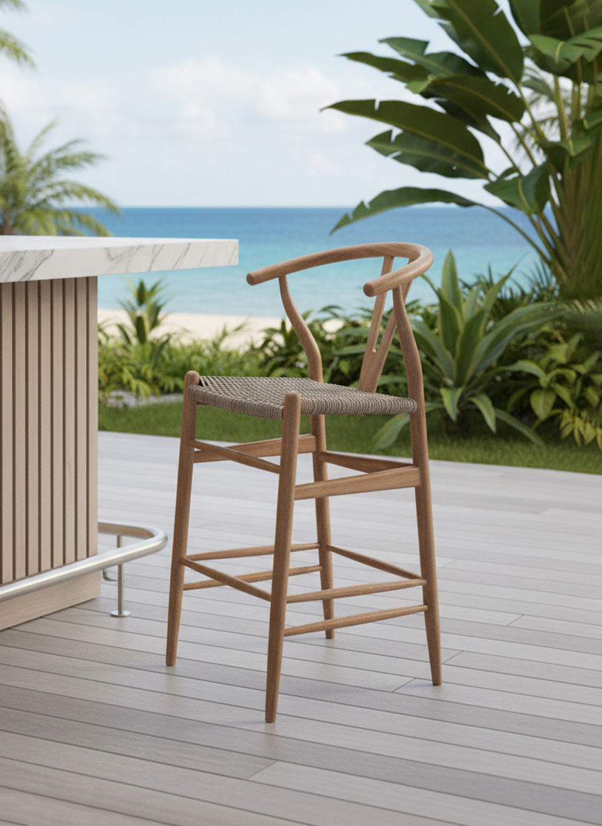 Materiales: Estructura de madera y aluminio, tejido con rejilla sintética de alta calidad, cojineria con espuma de alta densidad,