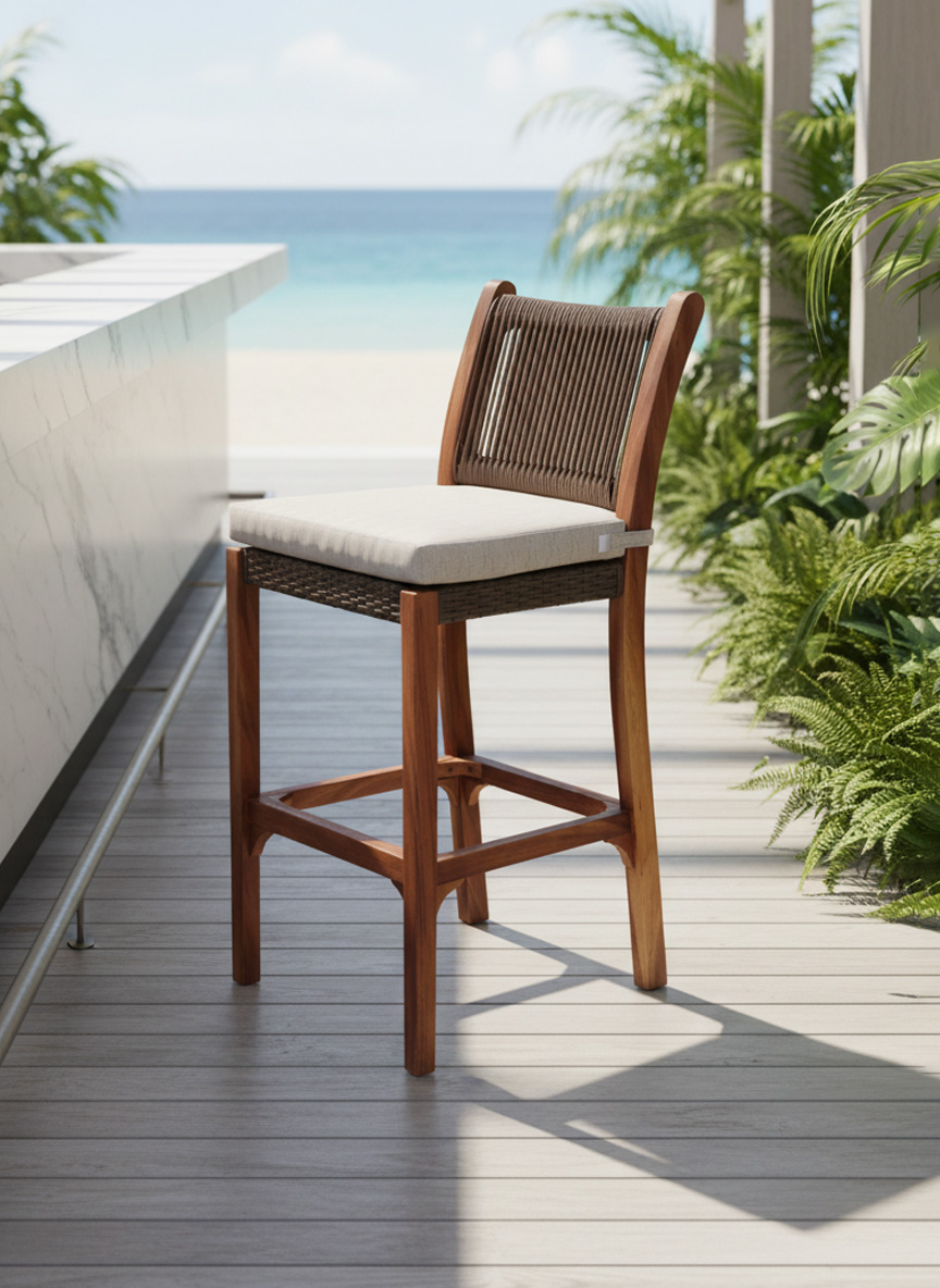 Materiales: Estructura de madera y aluminio, tejido con rejilla sintética de alta calidad, cojineria con espuma de alta densidad,