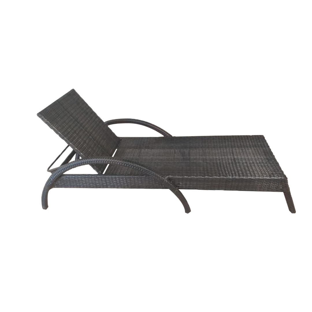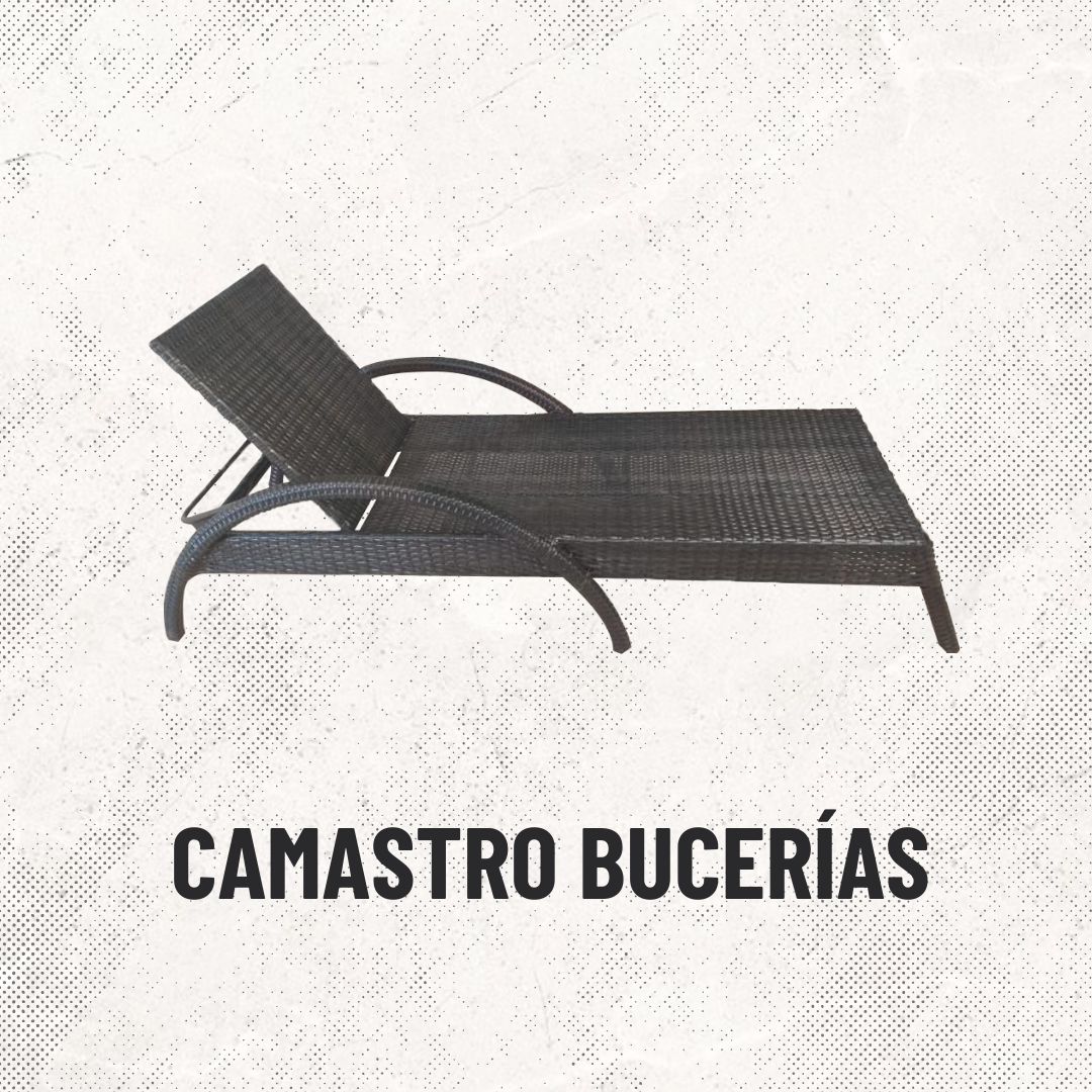 Camastro, fabricado con estructura de aluminio, tejidas con rejilla sintética, cojinería fabricada con hule espuma de alta densidad y tela resistente al sol y la intemperie.