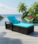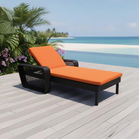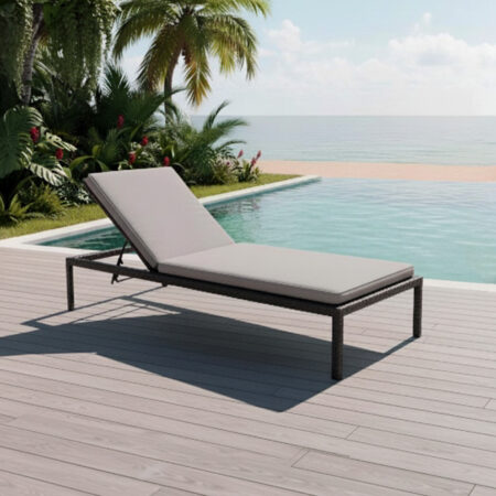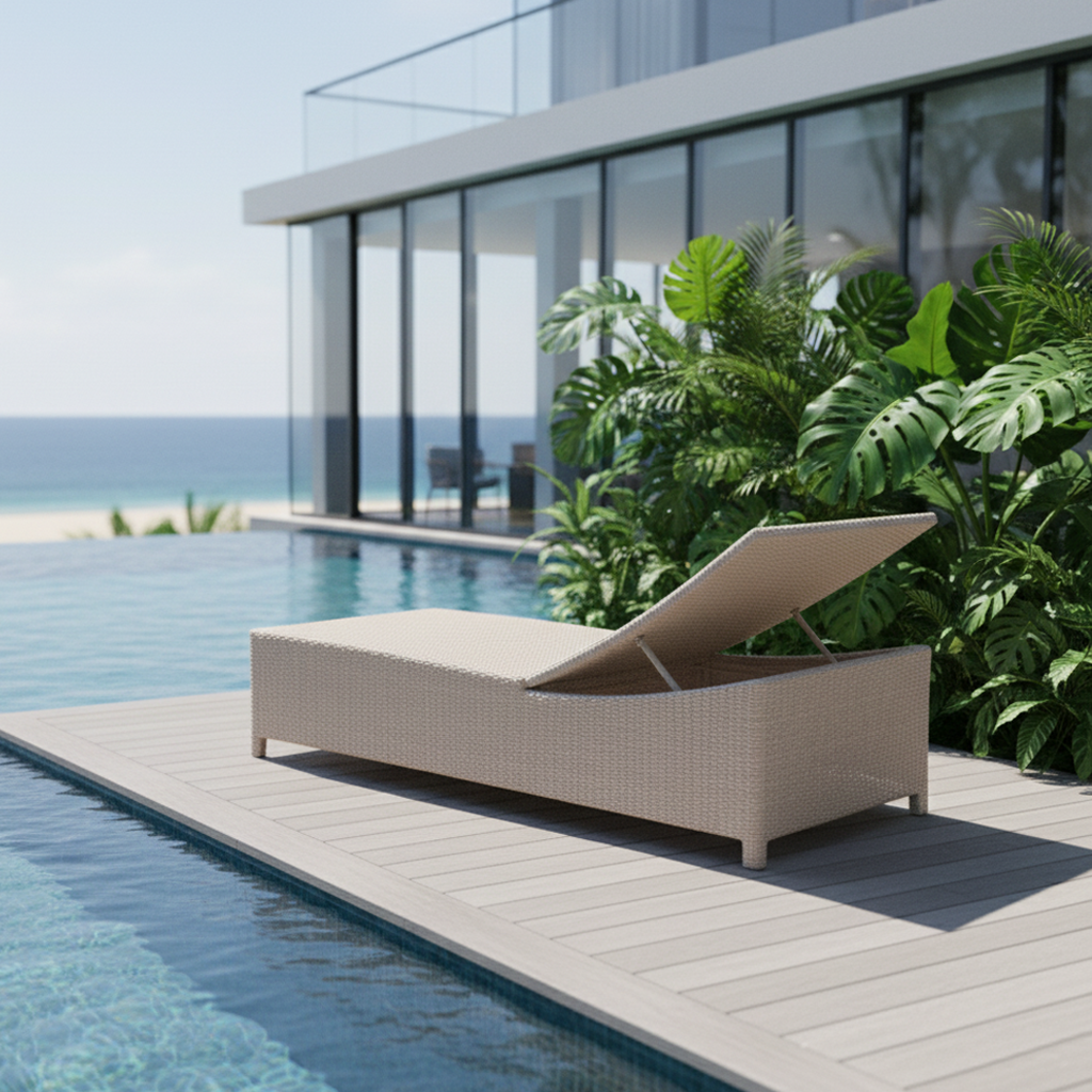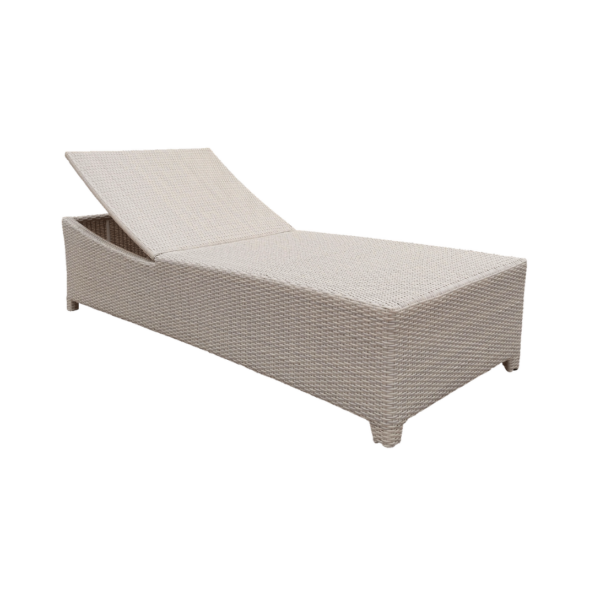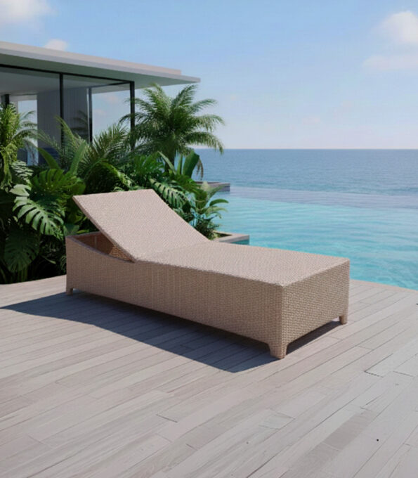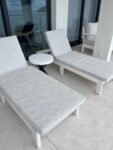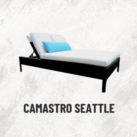 Camastro fabricado con una estructura aluminio, cojineria en tela sumbrella con espuma de alta densidad.