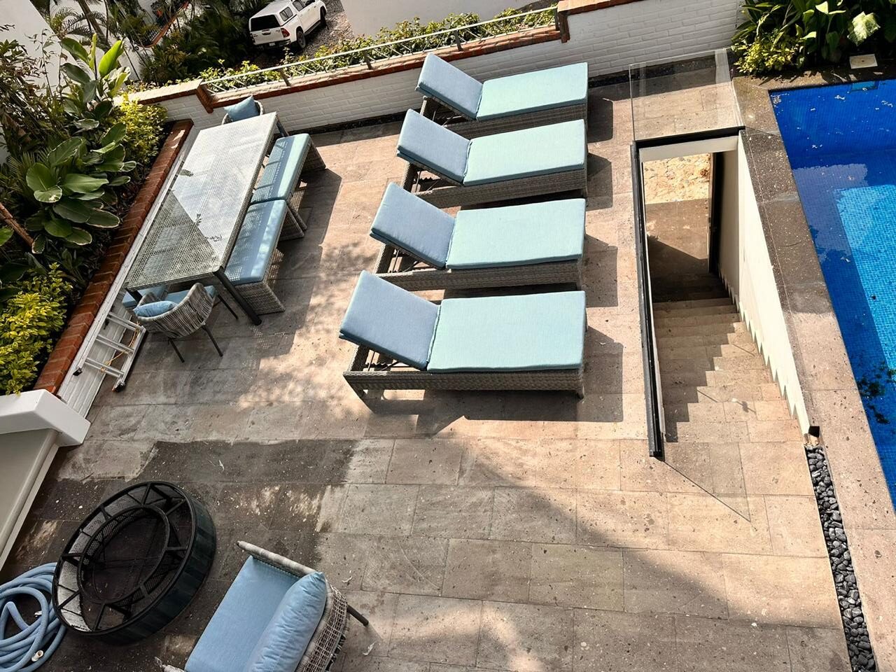 Fabricado con una estructura de aluminio, tejido con rejilla sintética de alta calidad, cojineria en tela sumbrella con espuma de alta densidad.