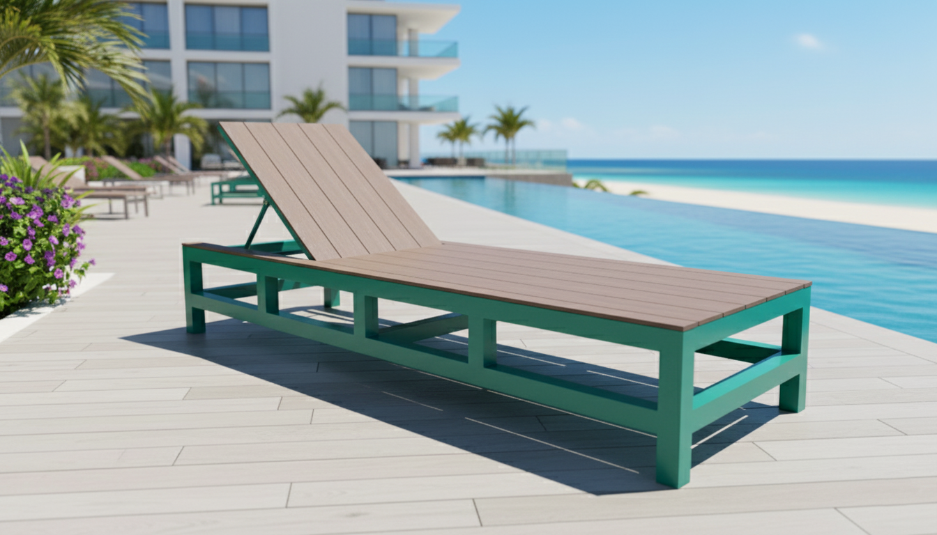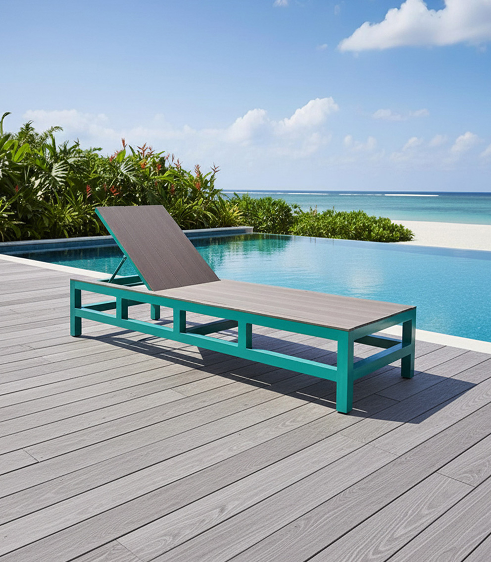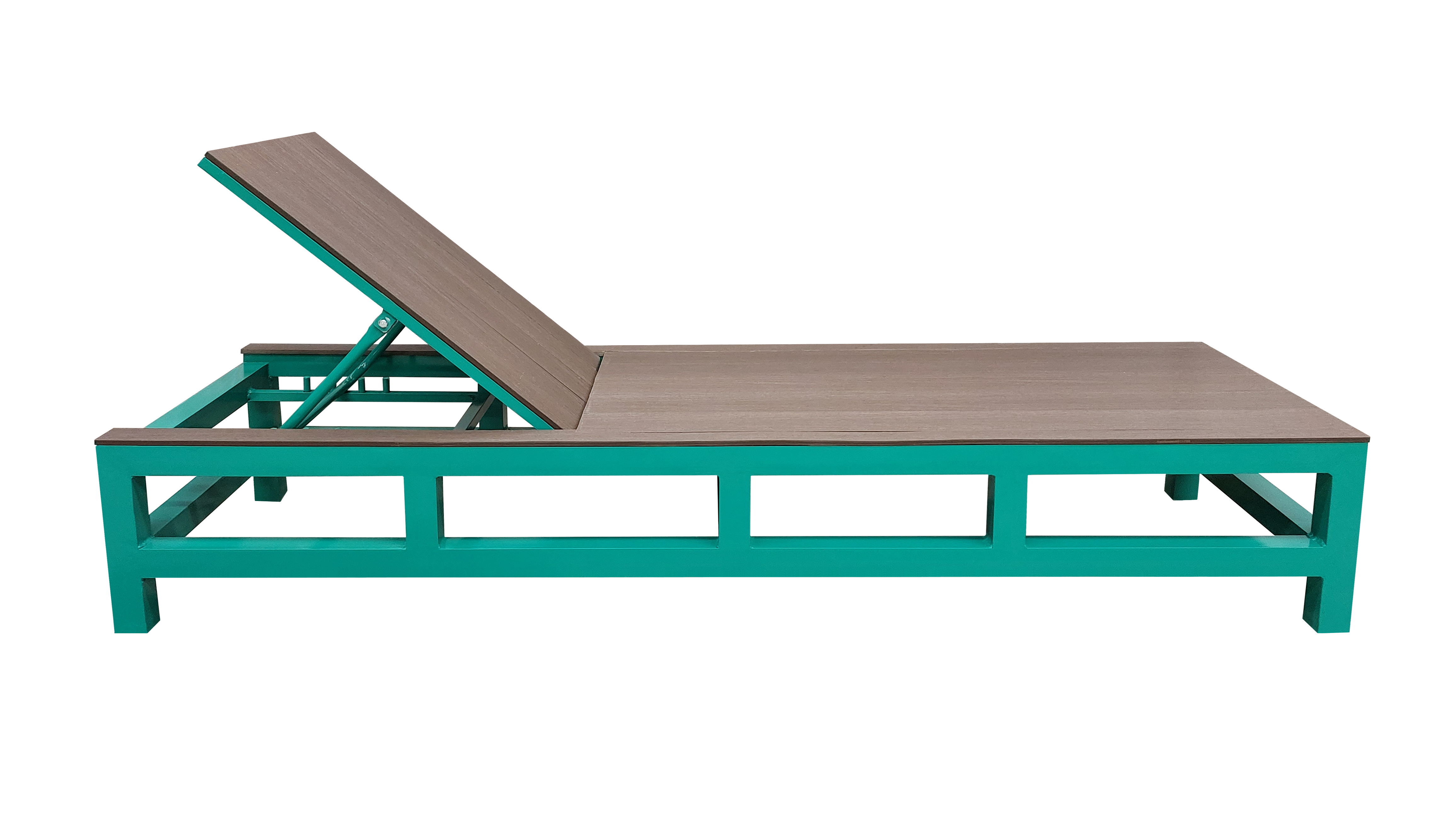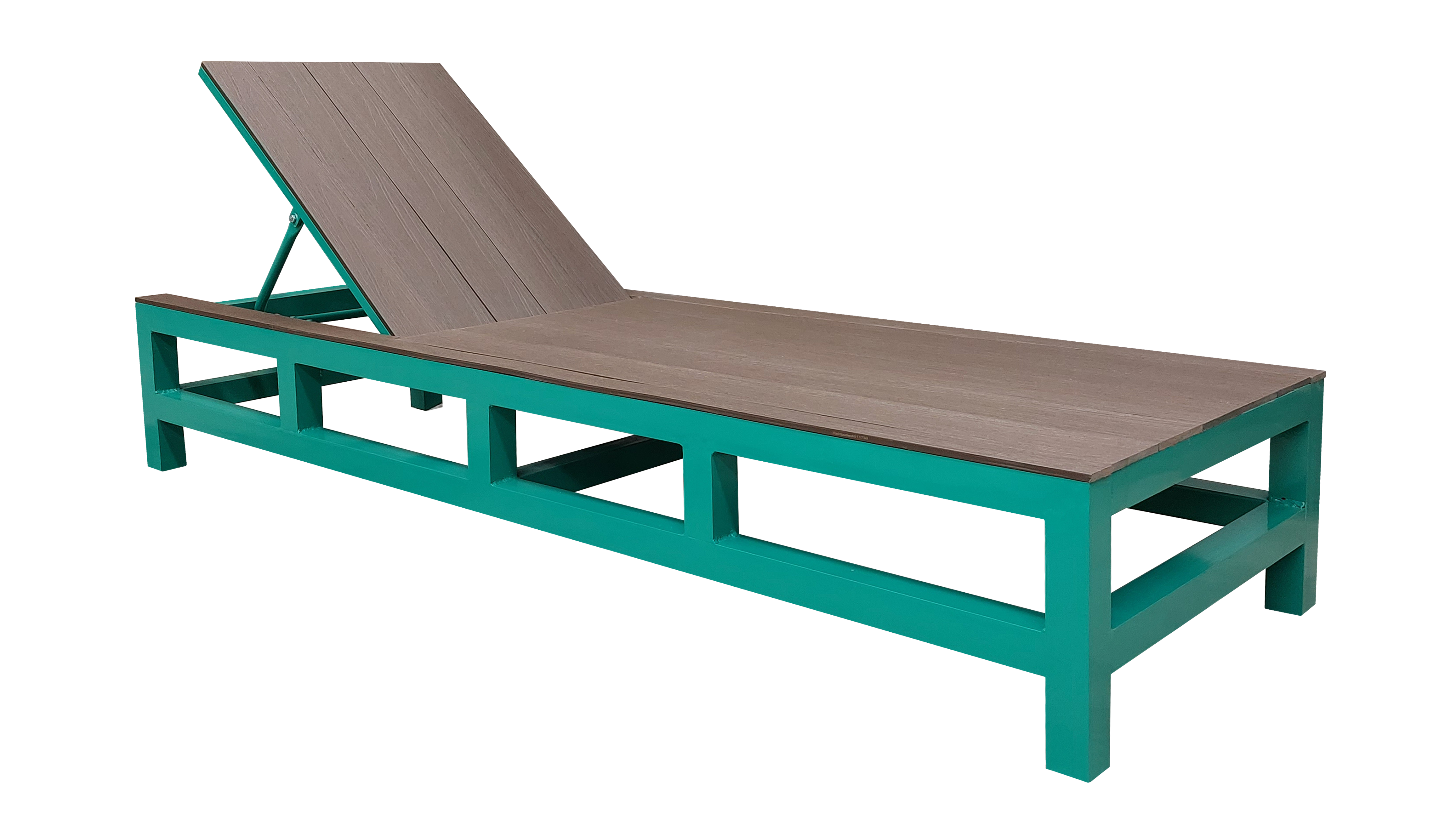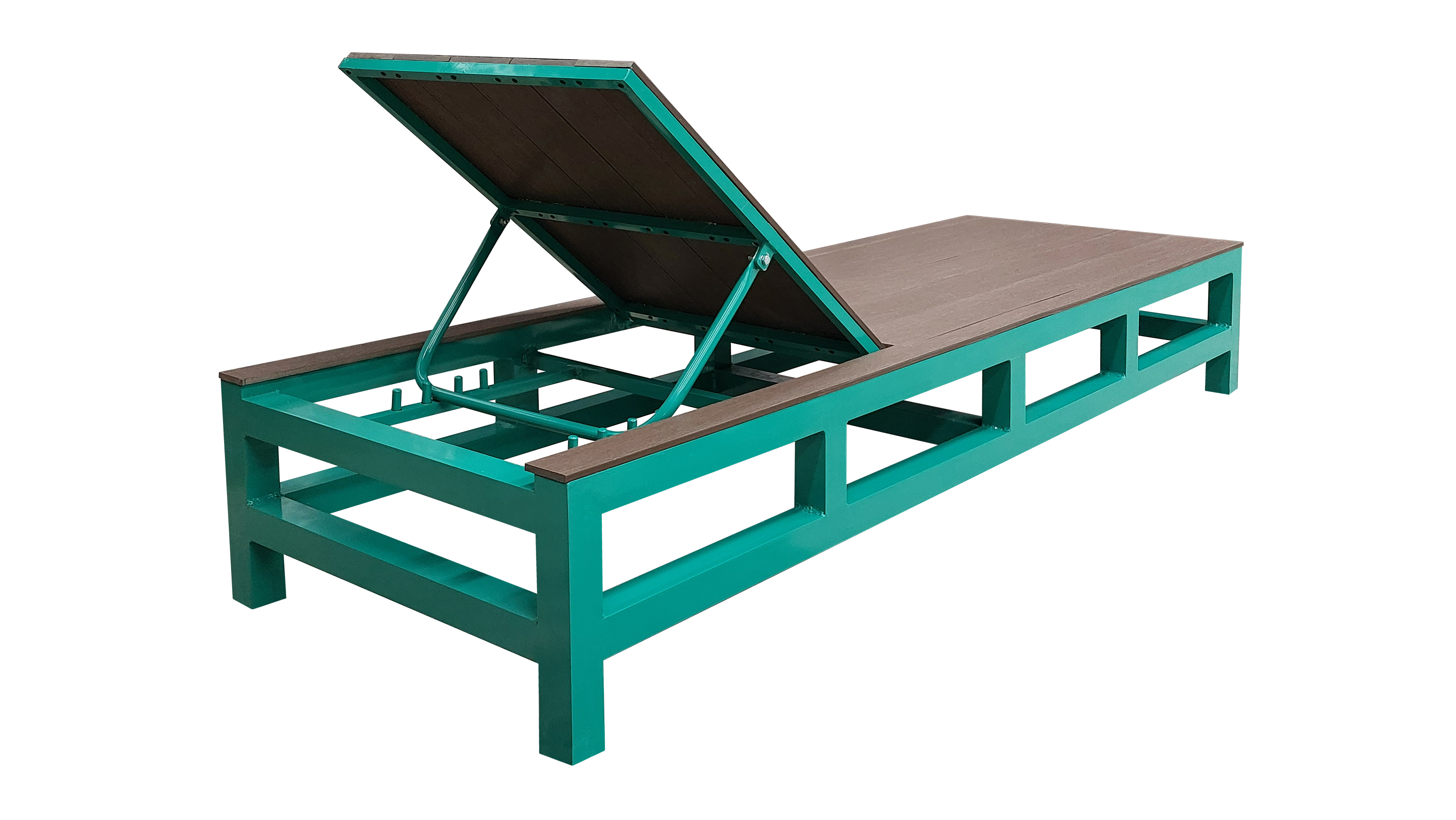 Armazón de aluminio con pintura electrostática, cubierto con tablas de Poliwood.