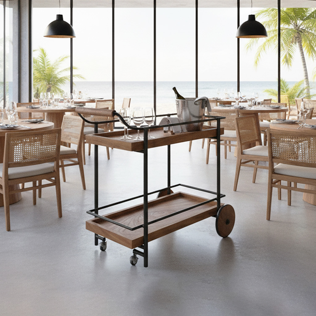 Estructura en aluminio y cubierta de madera, con pintura electrostatica.