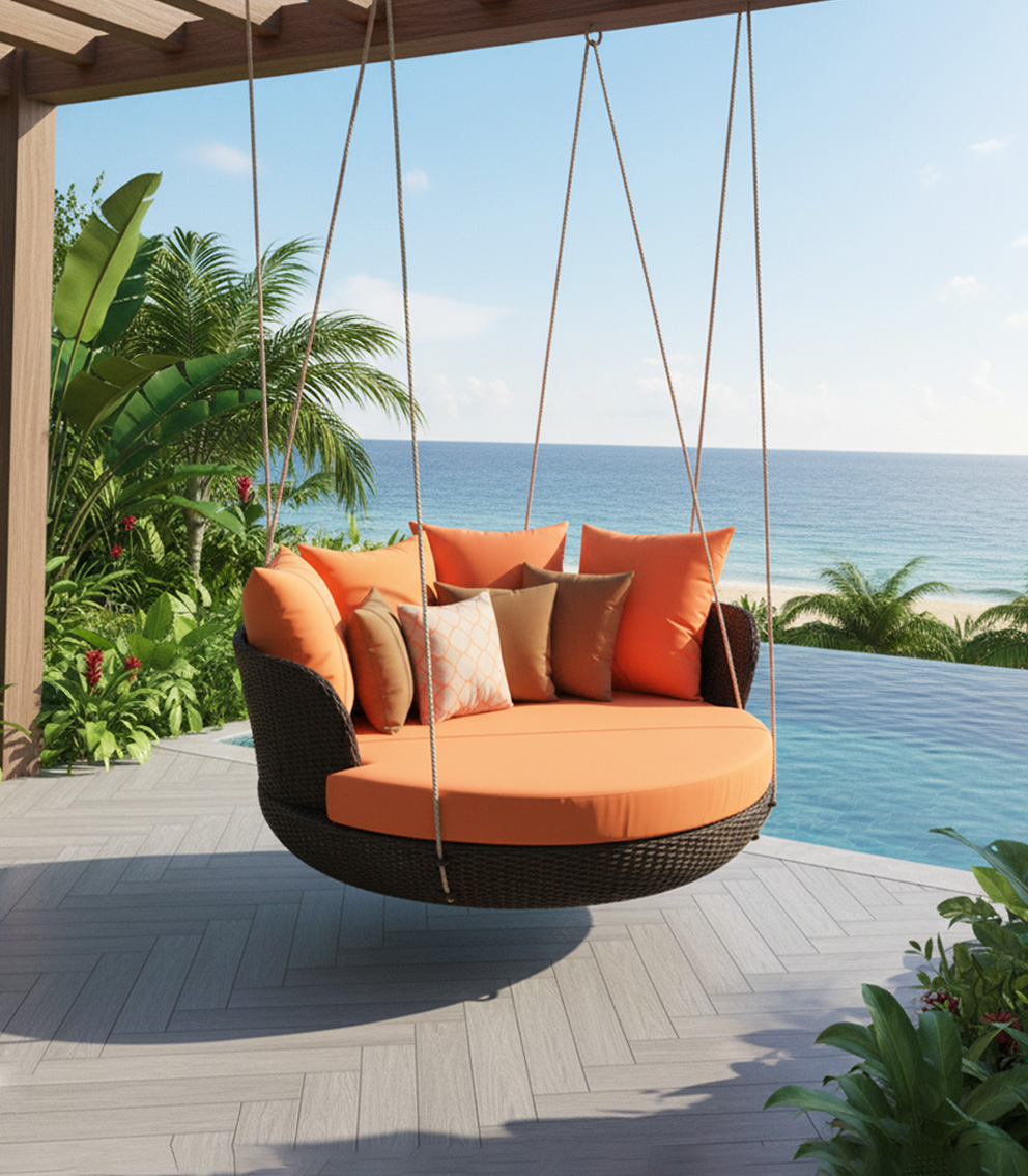 Estructura de madera, cojines en tela sumbrella, hule espuma de alta densidad.