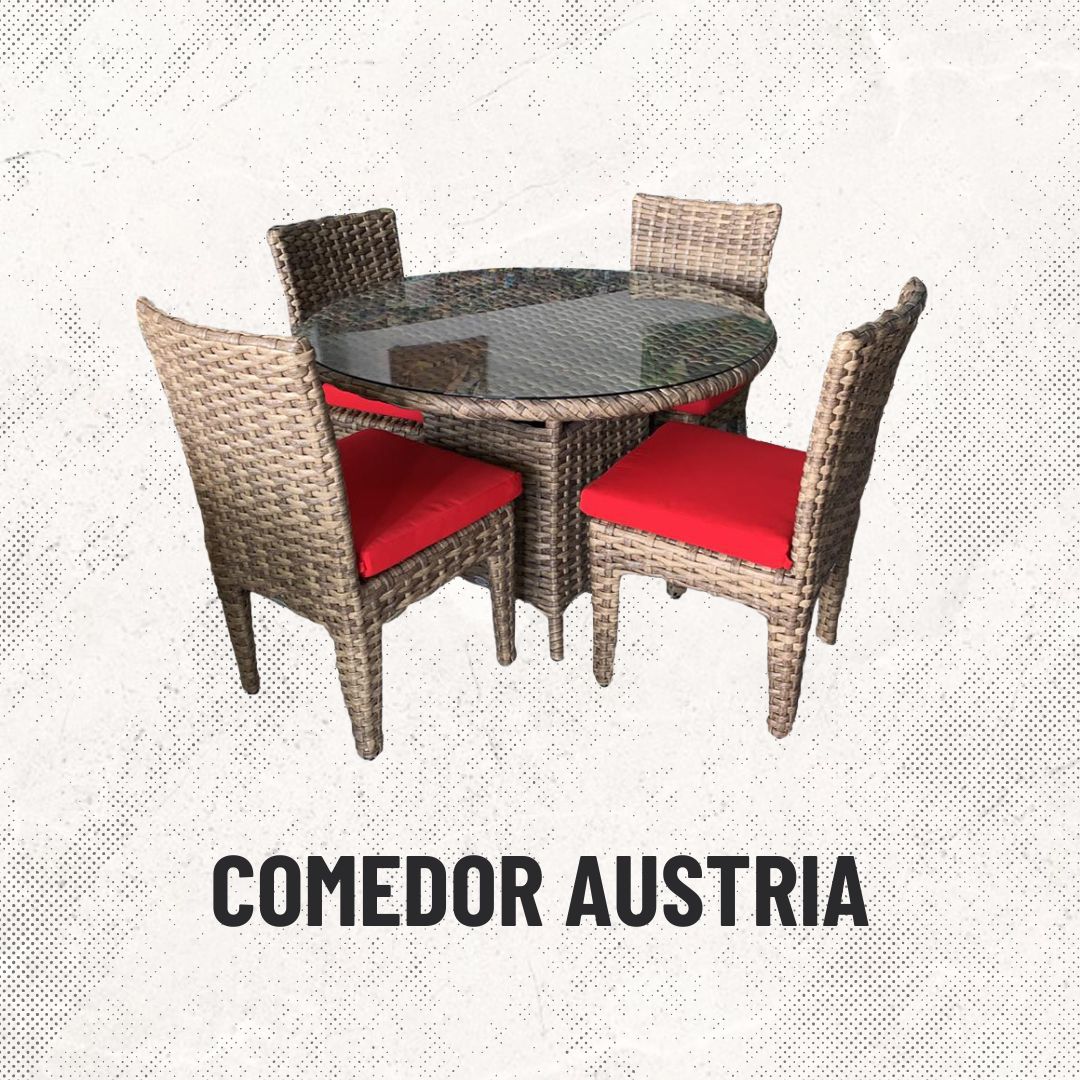 Mesa redonda con cubierta tejida y 4 sillas modelo Westin.