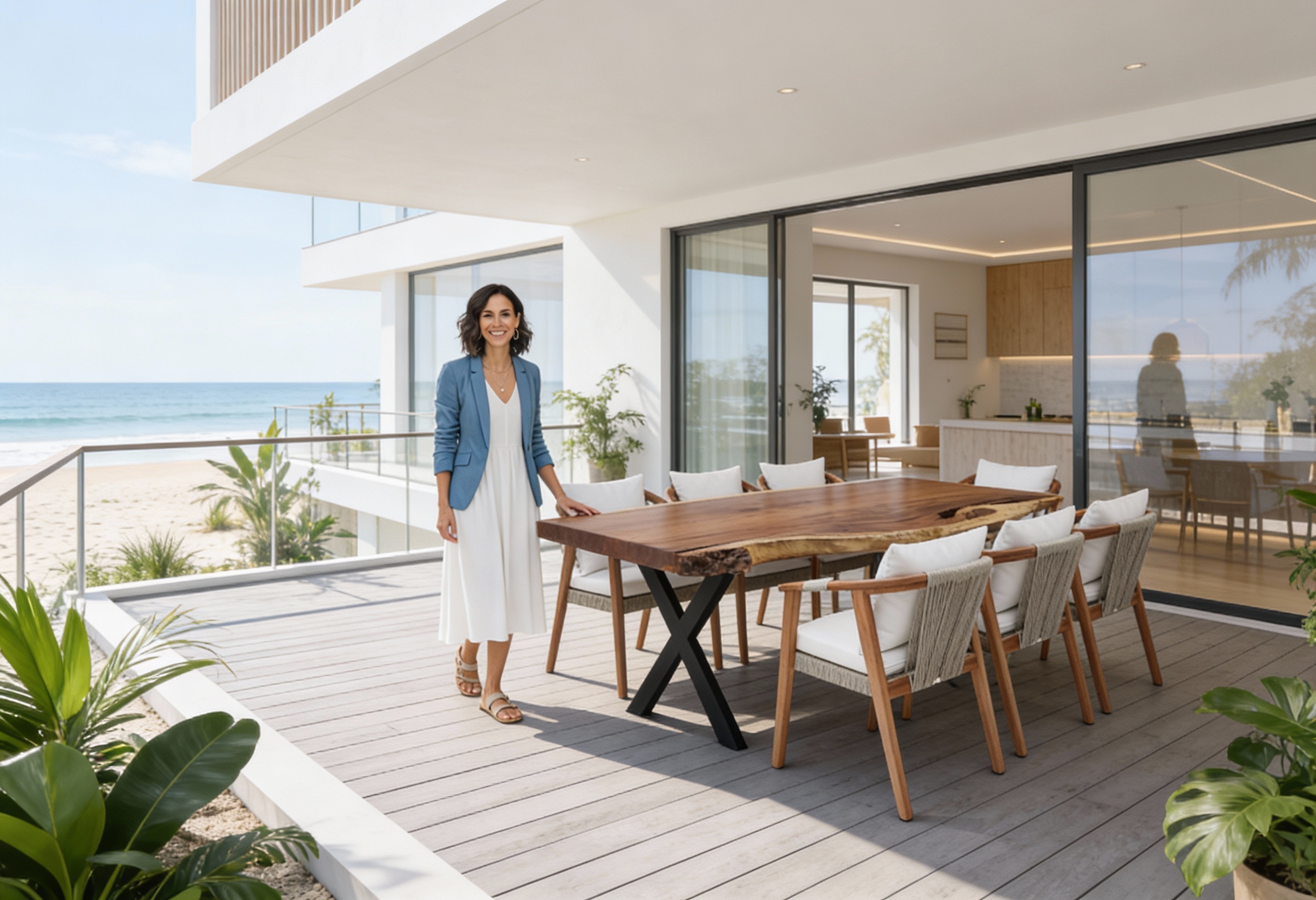 Mesa rectangular con cubierta de cristal y 6 sillas modelo Vallarta.