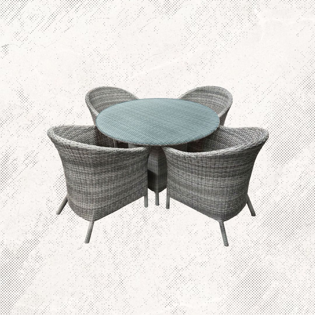 Mesa redonda con cubierta de cristal por dentro y 4 sillas modelo butaca Westin.