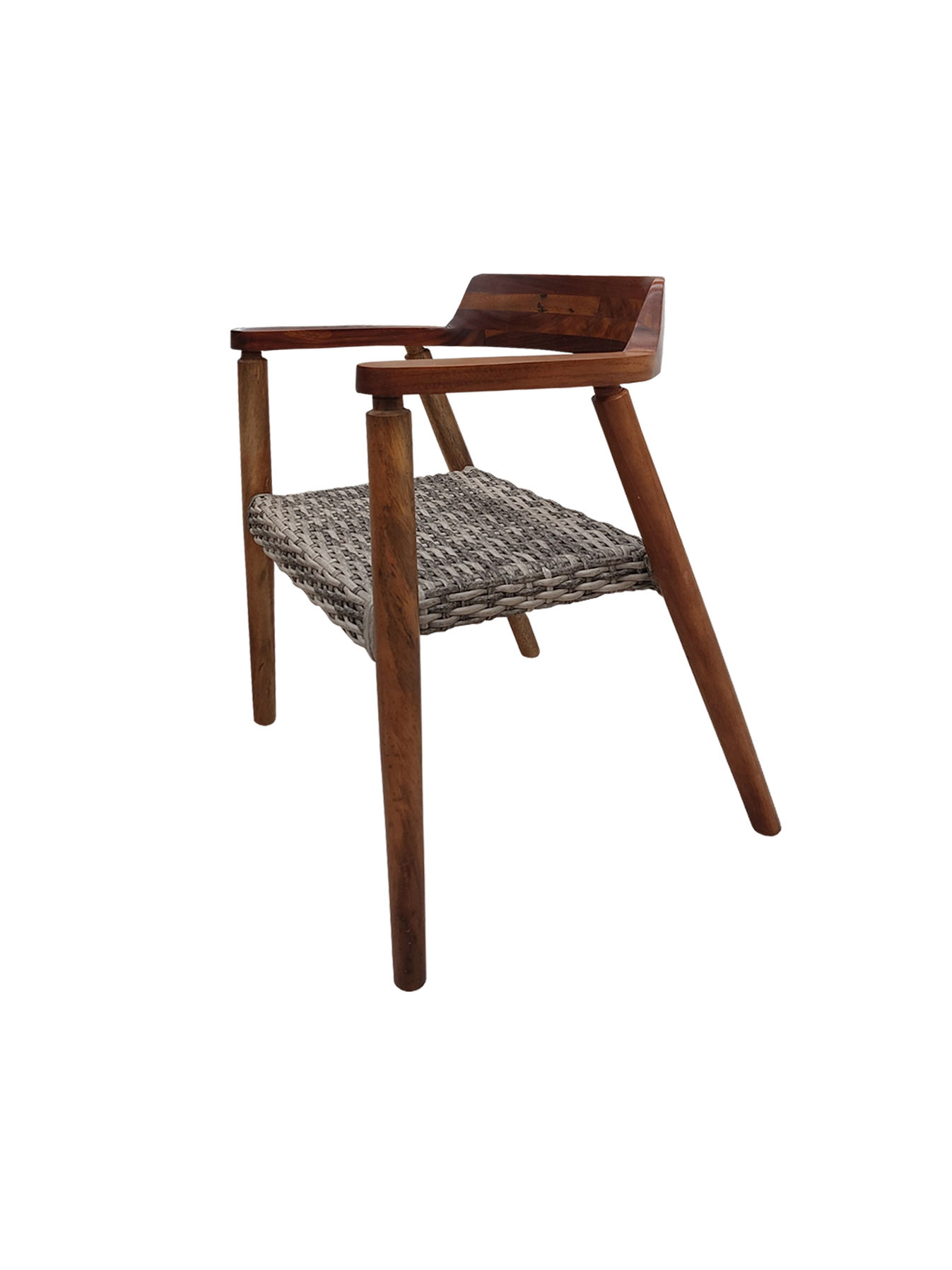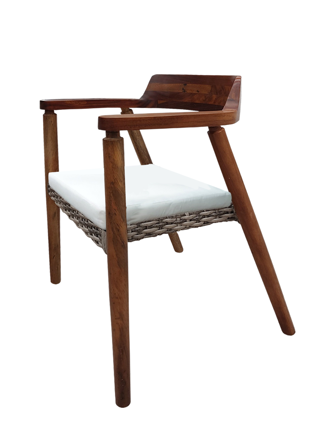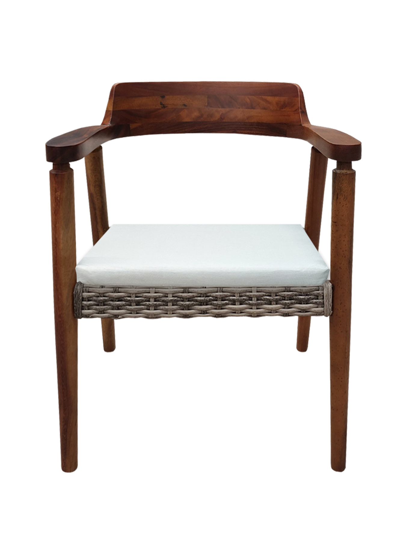 Materiales: Comedor con estructura de de madera, tejido con rejilla sintética de alta calidad, cojinería fabricada con hule espuma de alta densidad y tela resistente al sol y la intemperie.
