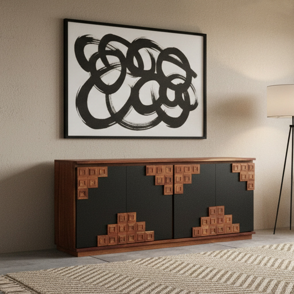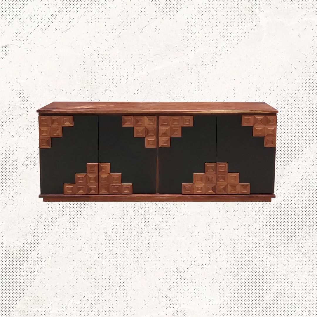 Materiales: Fabricada en madera con cajoneras, puertas abatibles y repisas interiores.