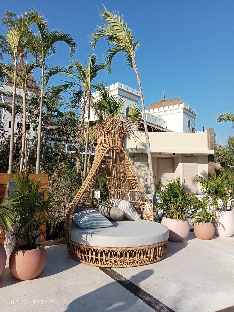 Estructura de aluminio con una base de madera, tejido con rejilla sintética de alta calidad, cojineria en tela sumbrella con hule espuma de alta densidad.
