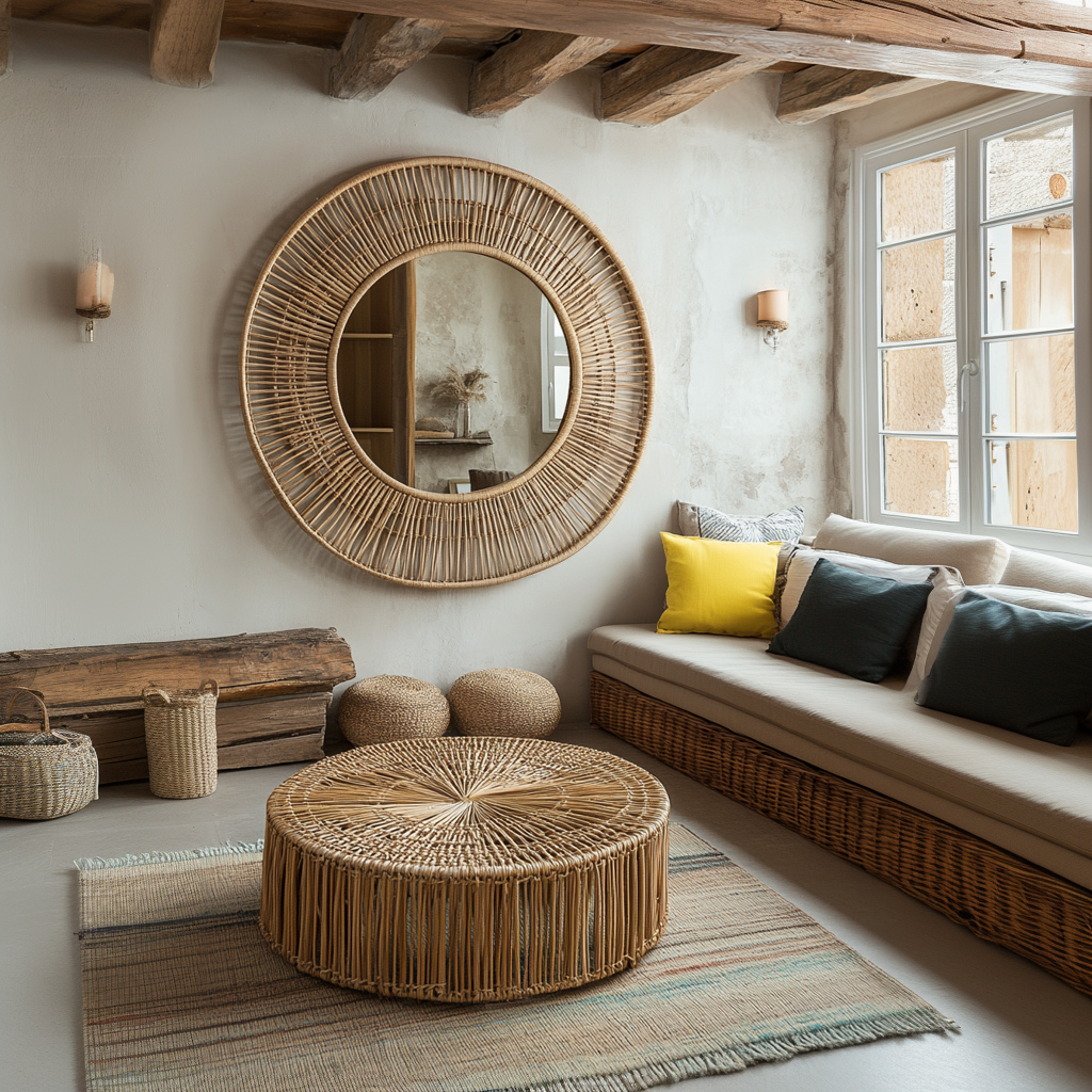 Fabricada en estructura de madera y detalles tejido con rejilla sintética.