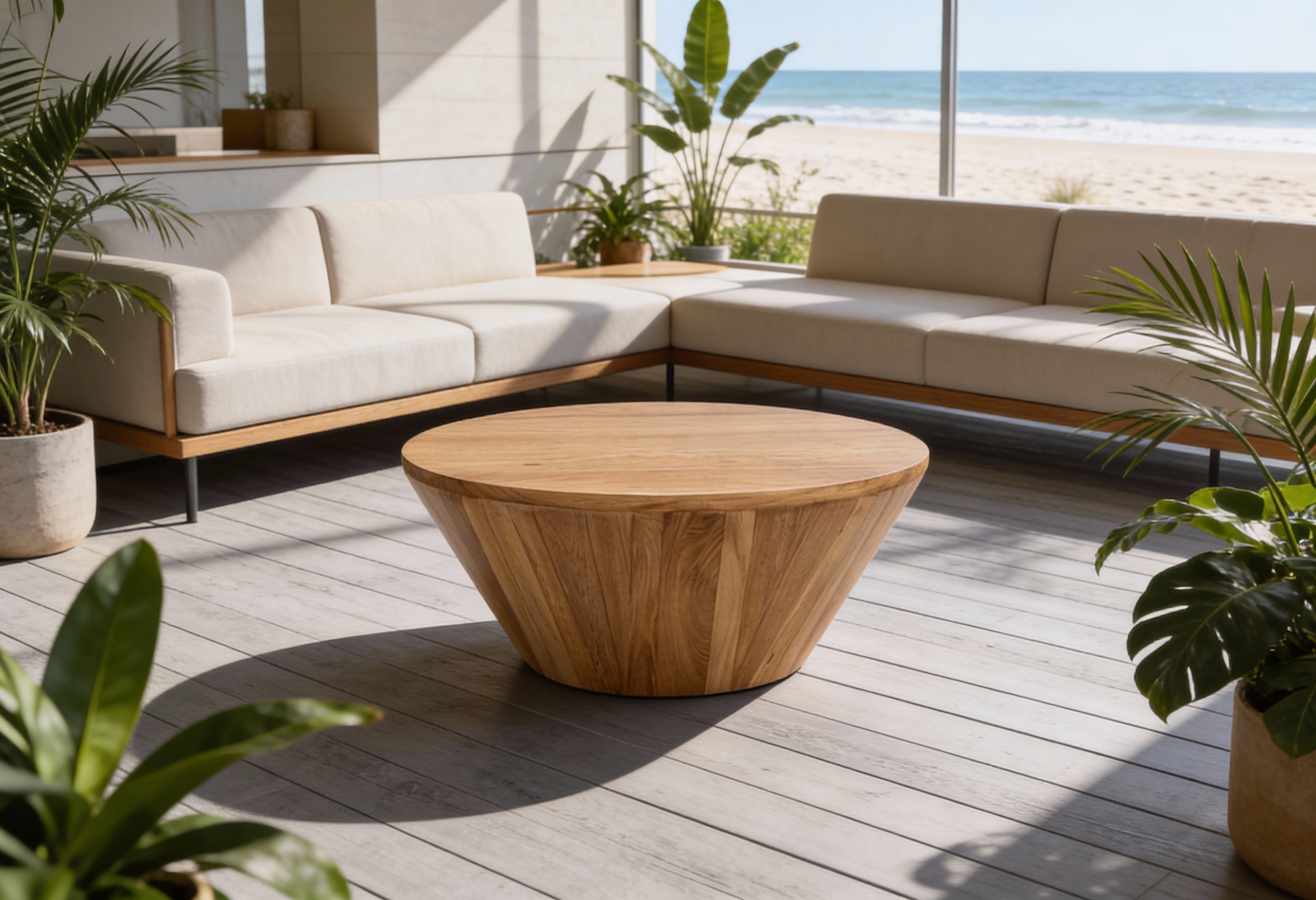 Estructura en aluminio y cubierta de madera.
