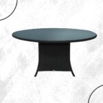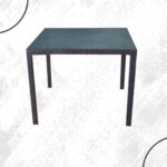 Mesa para 4 sillas, fabricada con cubierta de madera y una base de acero cubierta con pintura electrostática para mayor resistencia a los elementos.