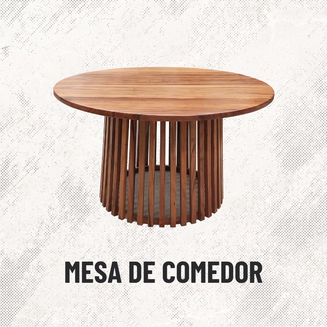 Materiales: Mesa redonda para 6 sillas, con cubierta y base de madera.
