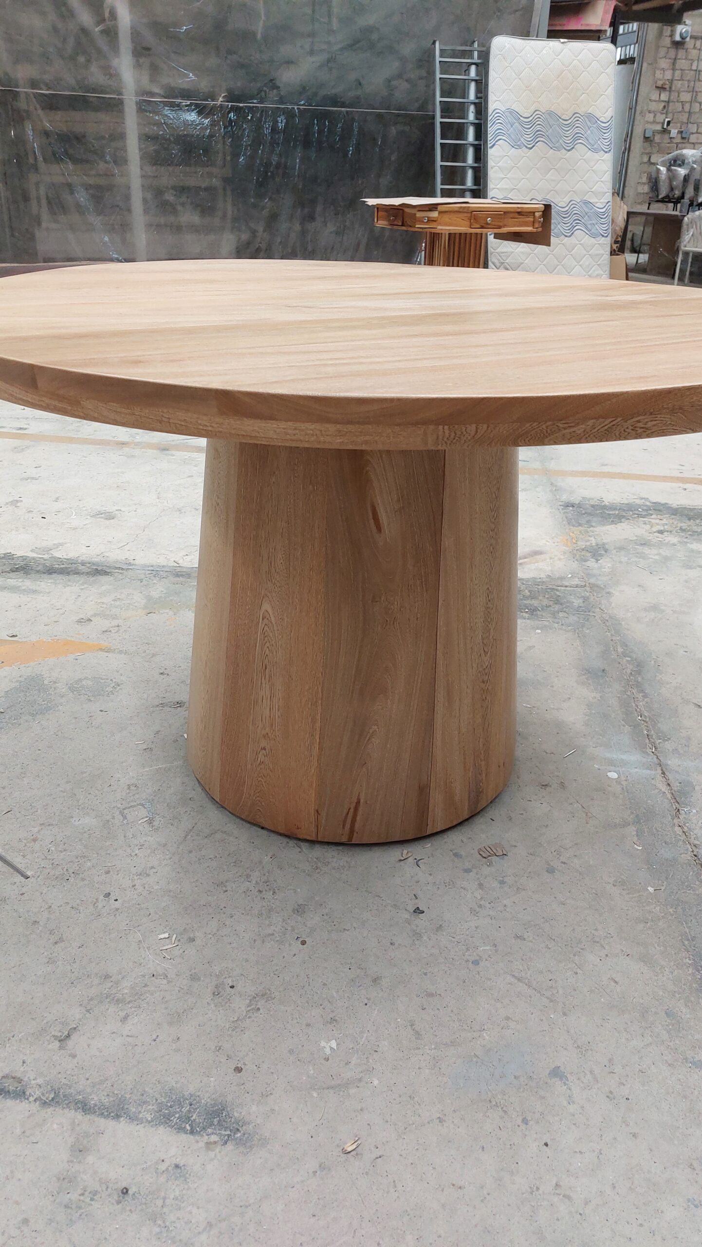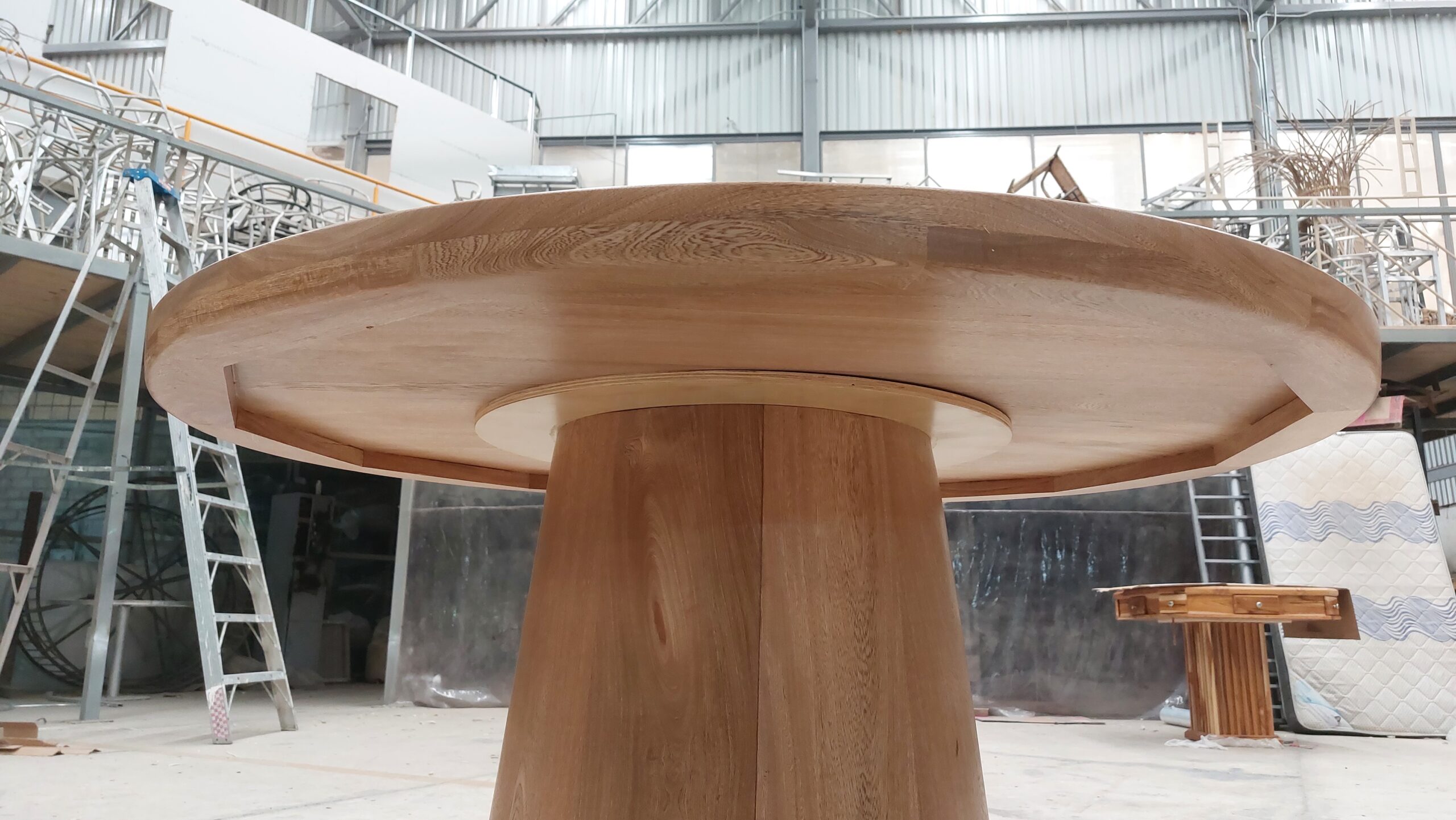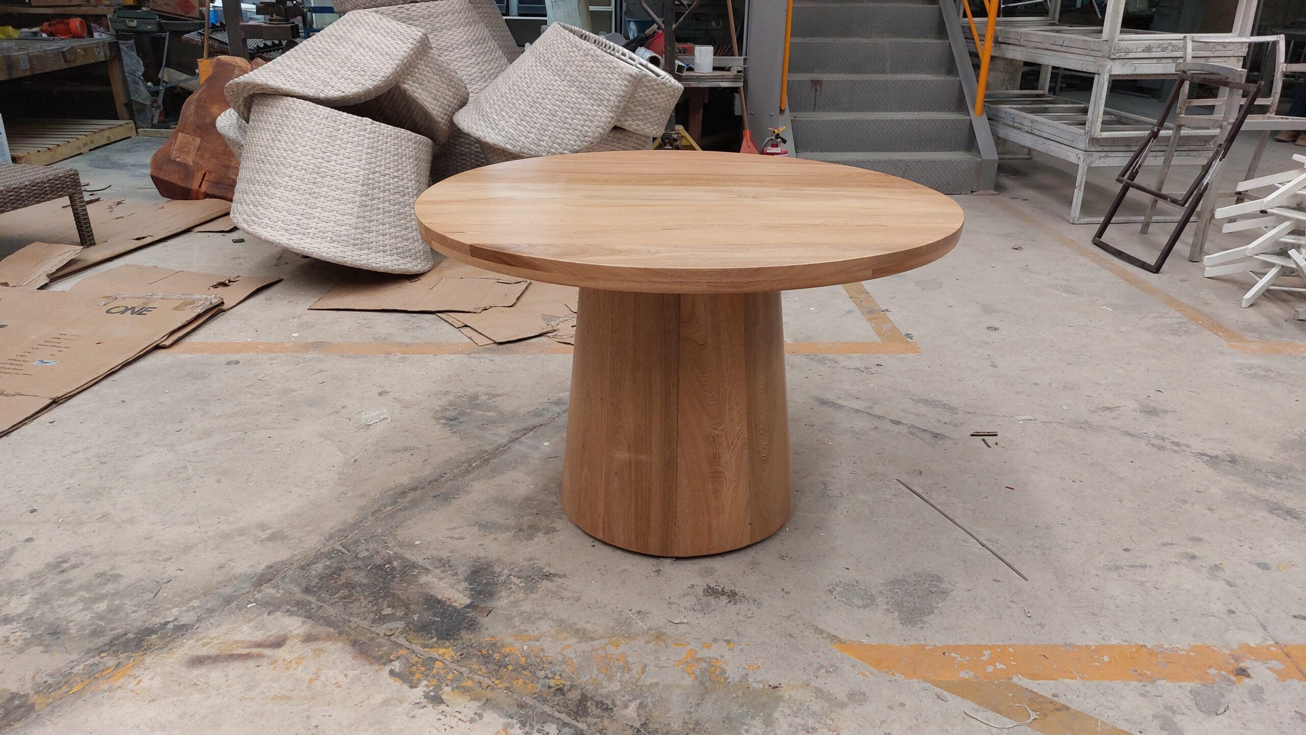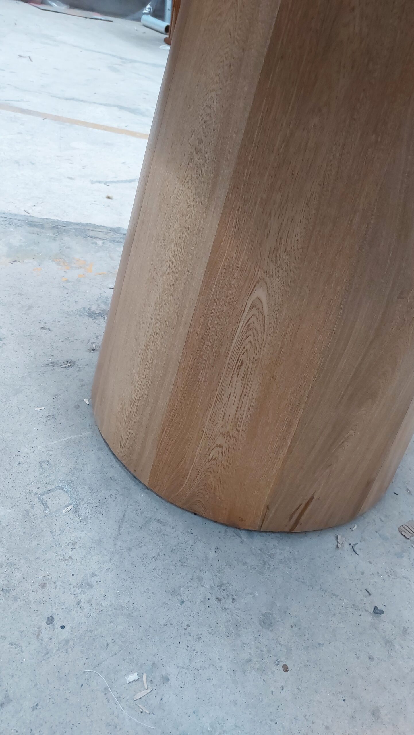 Materiales: Mesa circular para 4 sillas, con base y cubierta de madera Rosa Morada con un acabado semi-mate.