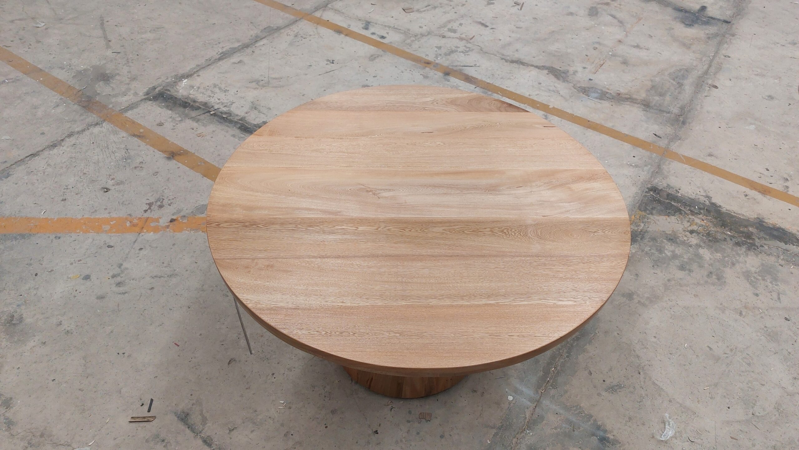 Materiales: Mesa circular con cubierta y base de madera, en una gran variedad de materiales.