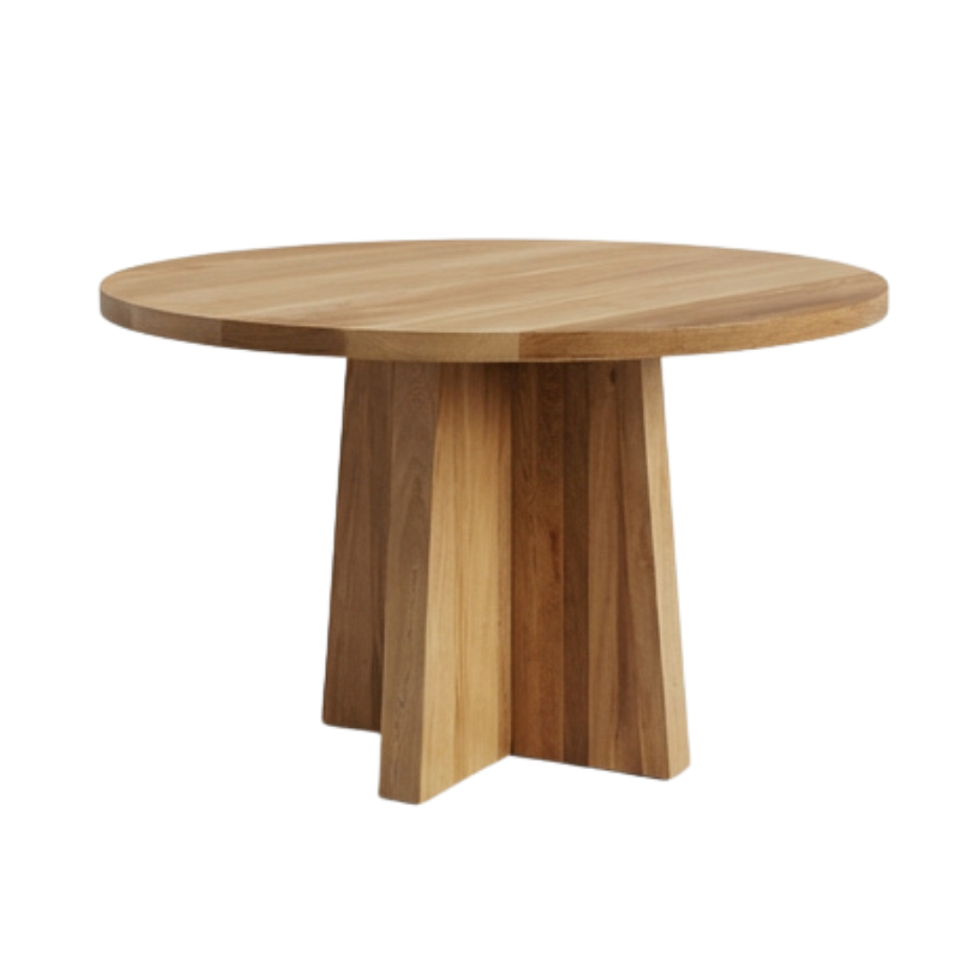 Materiales: Mesa circular para 4 sillas, con base y cubierta de madera.