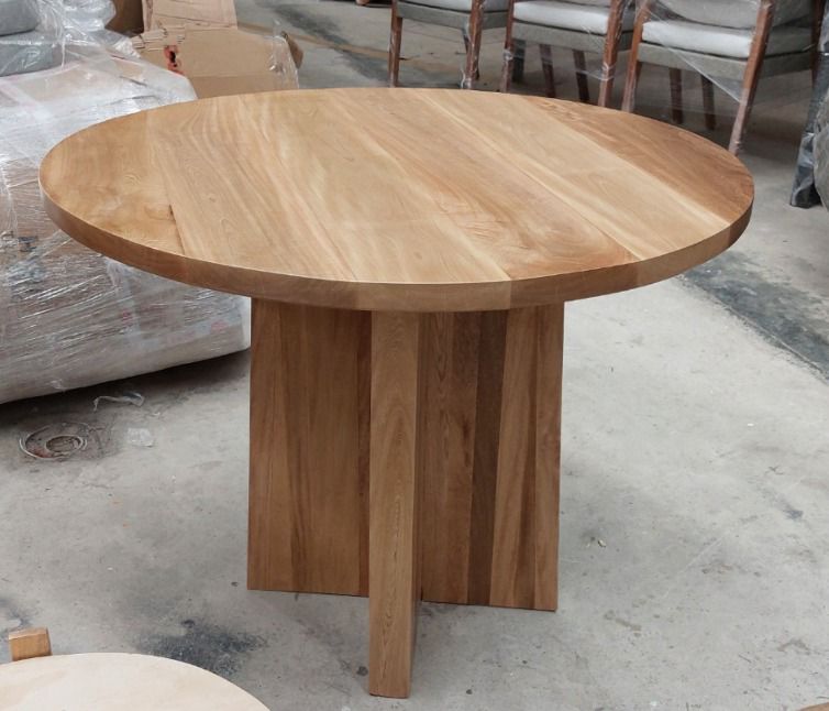 Materiales: Mesa redonda para 6 sillas, con cubierta y base de madera.