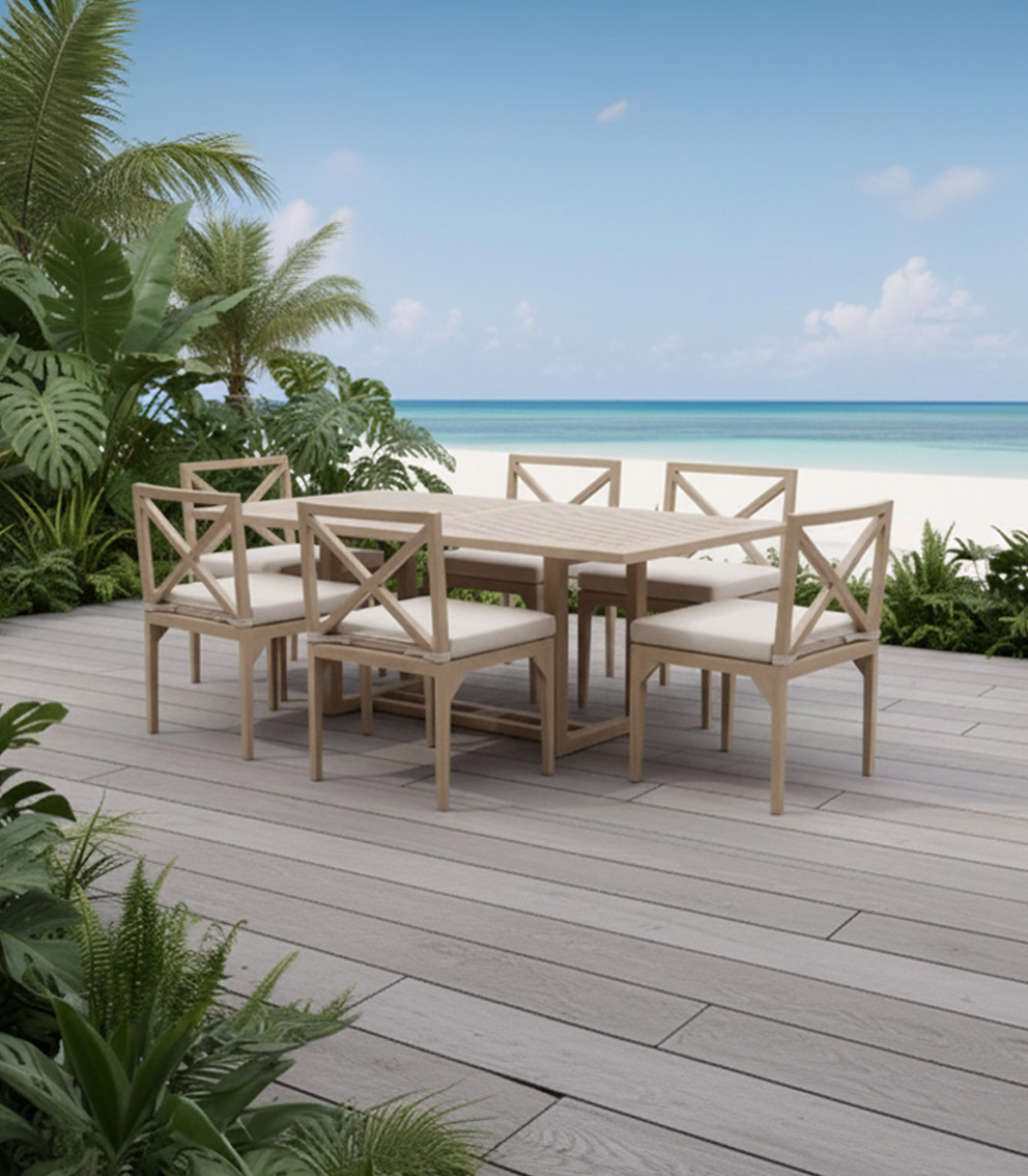 Mesa para 6 sillas, fabricada con una base y estructura de madera.