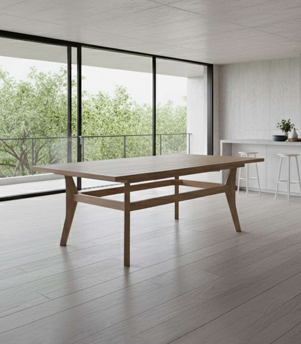 Materiales: Mesa rectangular para 6 sillas, con una base y cubierta de madera, en una gran variedad de materiales.