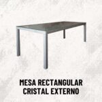 Mesa rectangular para 6 sillas, fabricada con base de acero y cubierta de madera.
