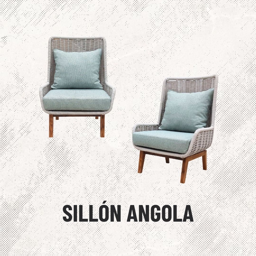 Estructura en aluminio, tejido con rattan sintético, cojineria fabricada con hule espuma de alta densidad y tela resistente al sol y la intemperie.