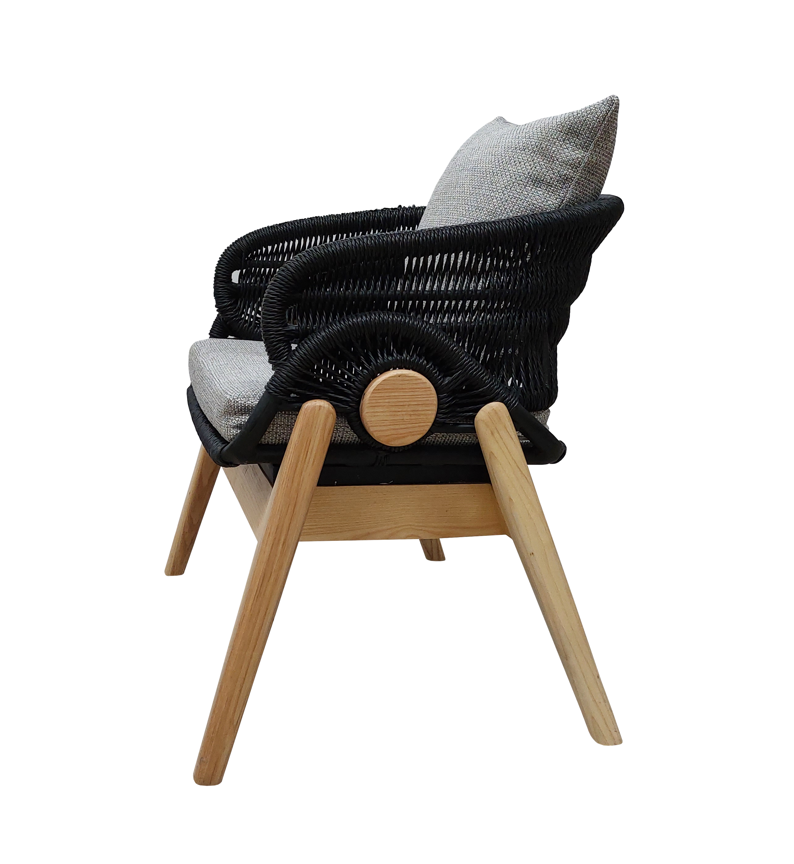 Materiales: Estructura de madera, tejido con rejilla sintética de alta calidad, cojineria con espuma de alta densidad.