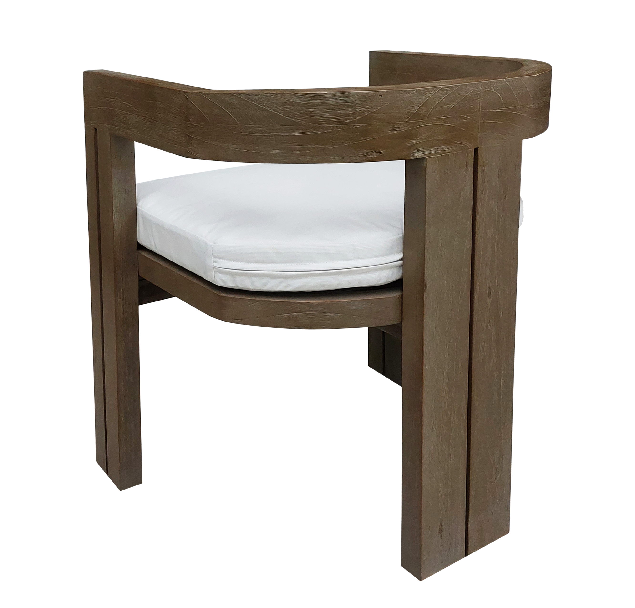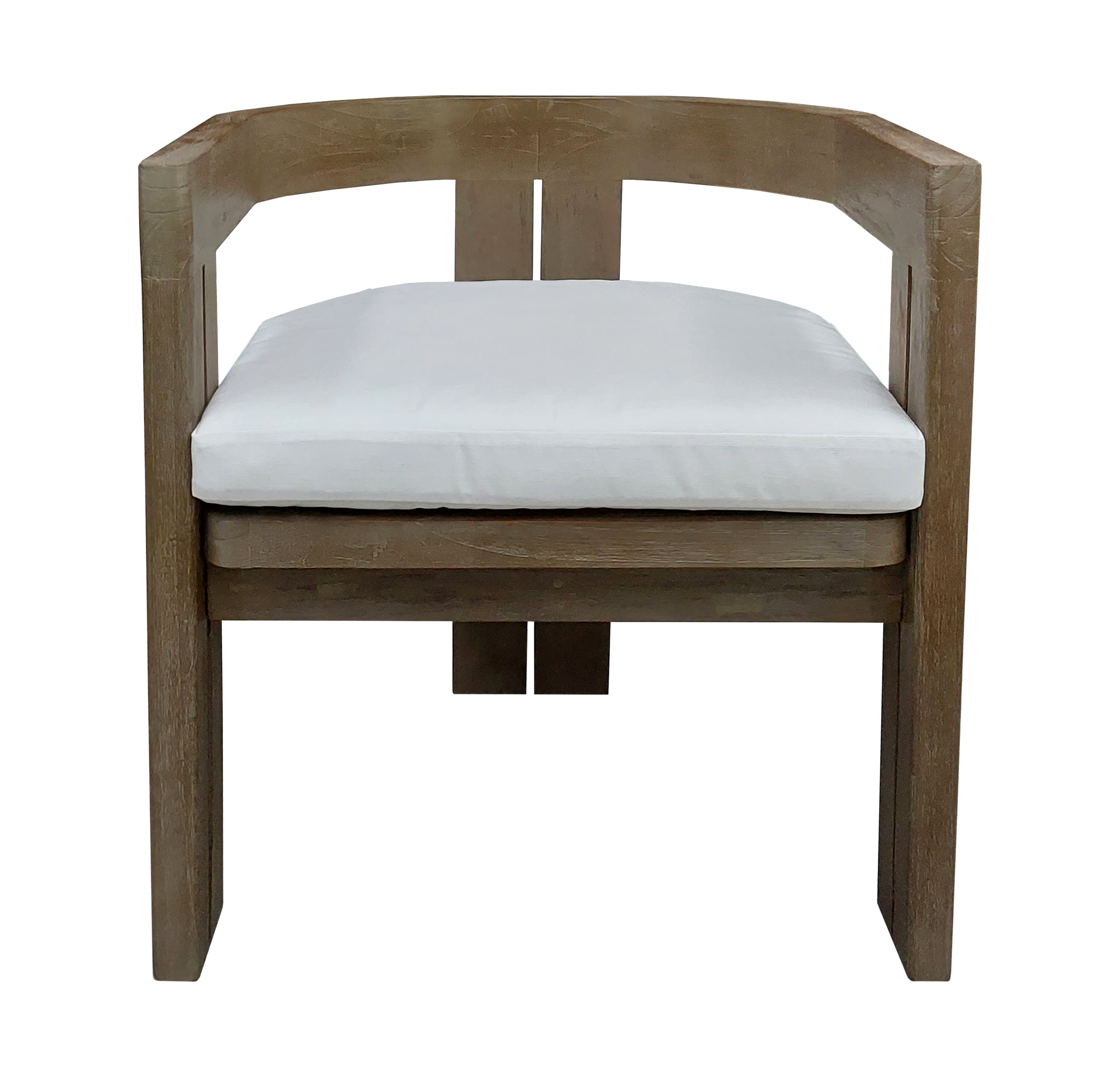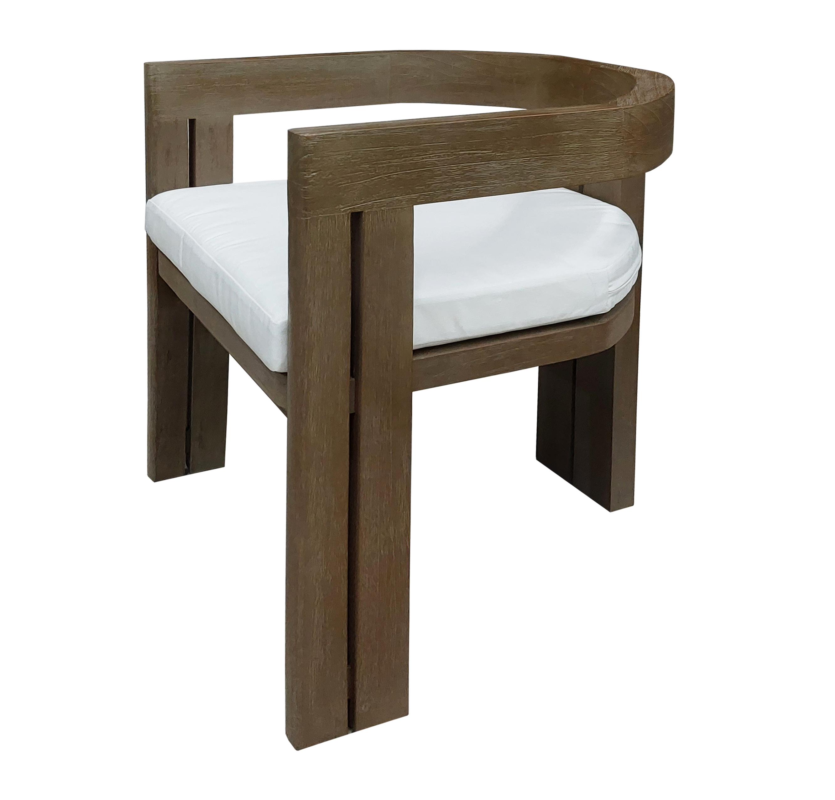 Materiales: Armazón de aluminio, tejido con rejilla sintética, cojín hule espuma de alta densidad, funda interna y funda en tela sunbrella con cierres reforzados..