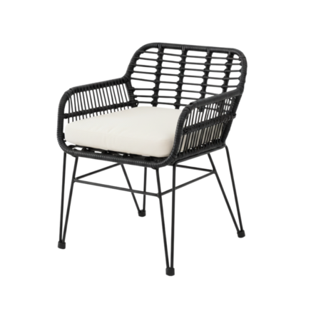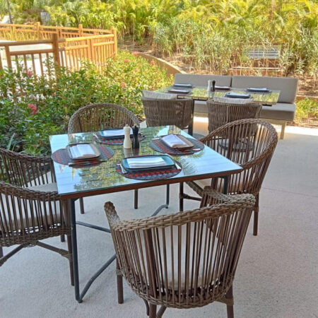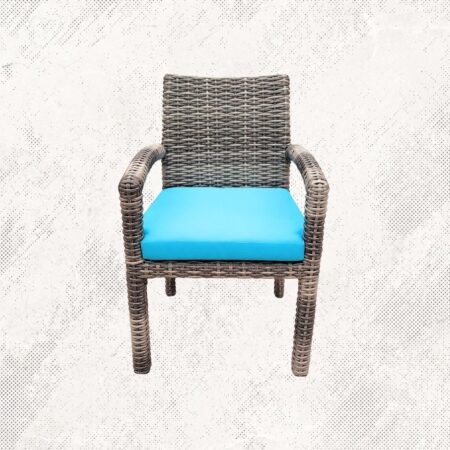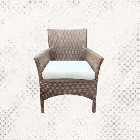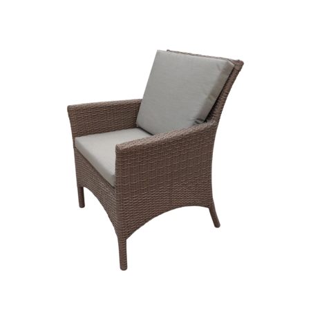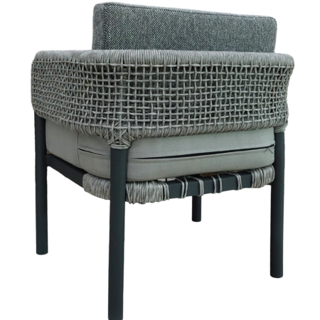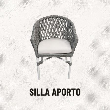 Estructura en aluminio, tejido con rejilla sintética, cojineria fabricada con hule espuma de alta densidad y tela resistente al sol y la intemperie.