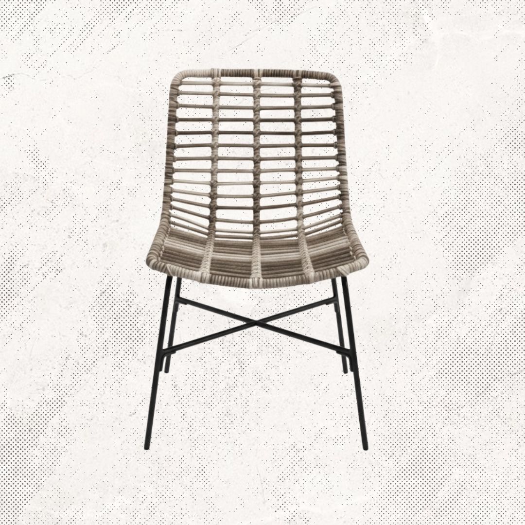 Estructura de madera y aluminio, tejido con rejilla sintética, cojineria fabricada con hule espuma de alta densidad y tela resistente al sol y la intemperie.