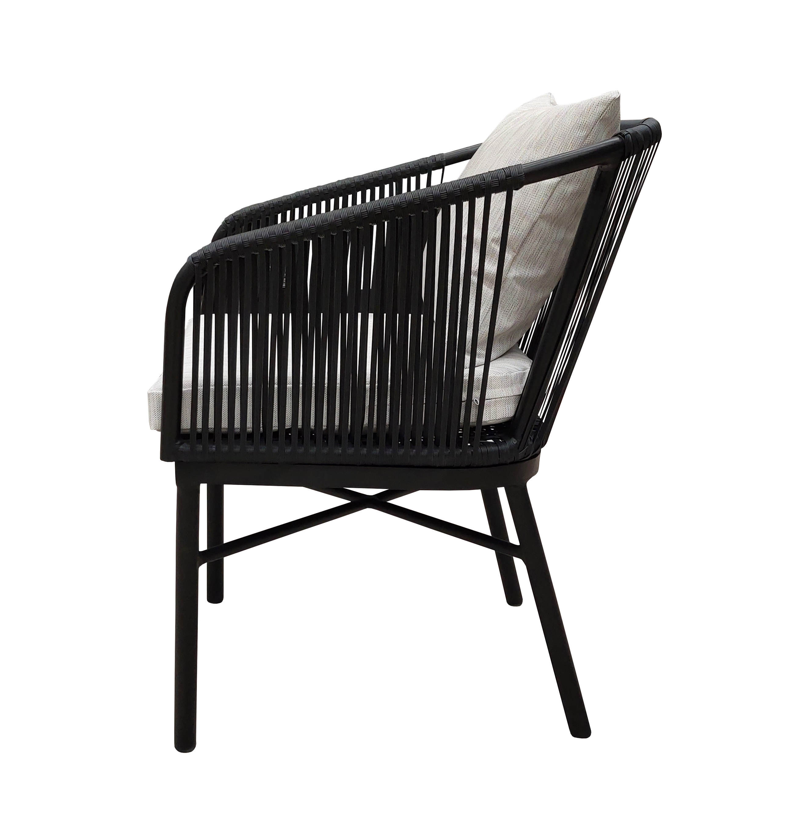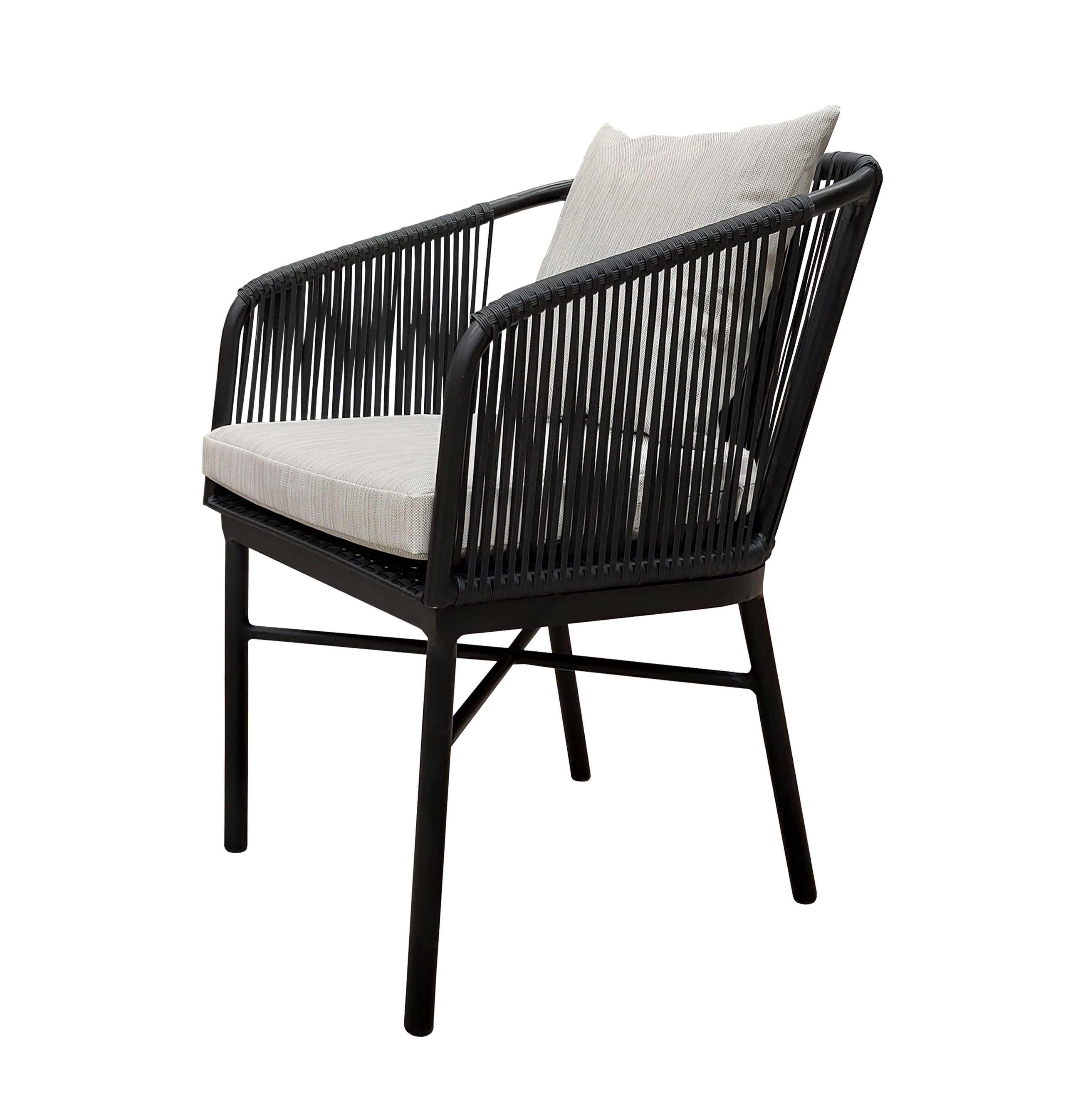 Materiales: Estructura de aluminio, base de madera, tejido con rejilla sintética de alta calidad, cojineria con espuma de alta densidad.